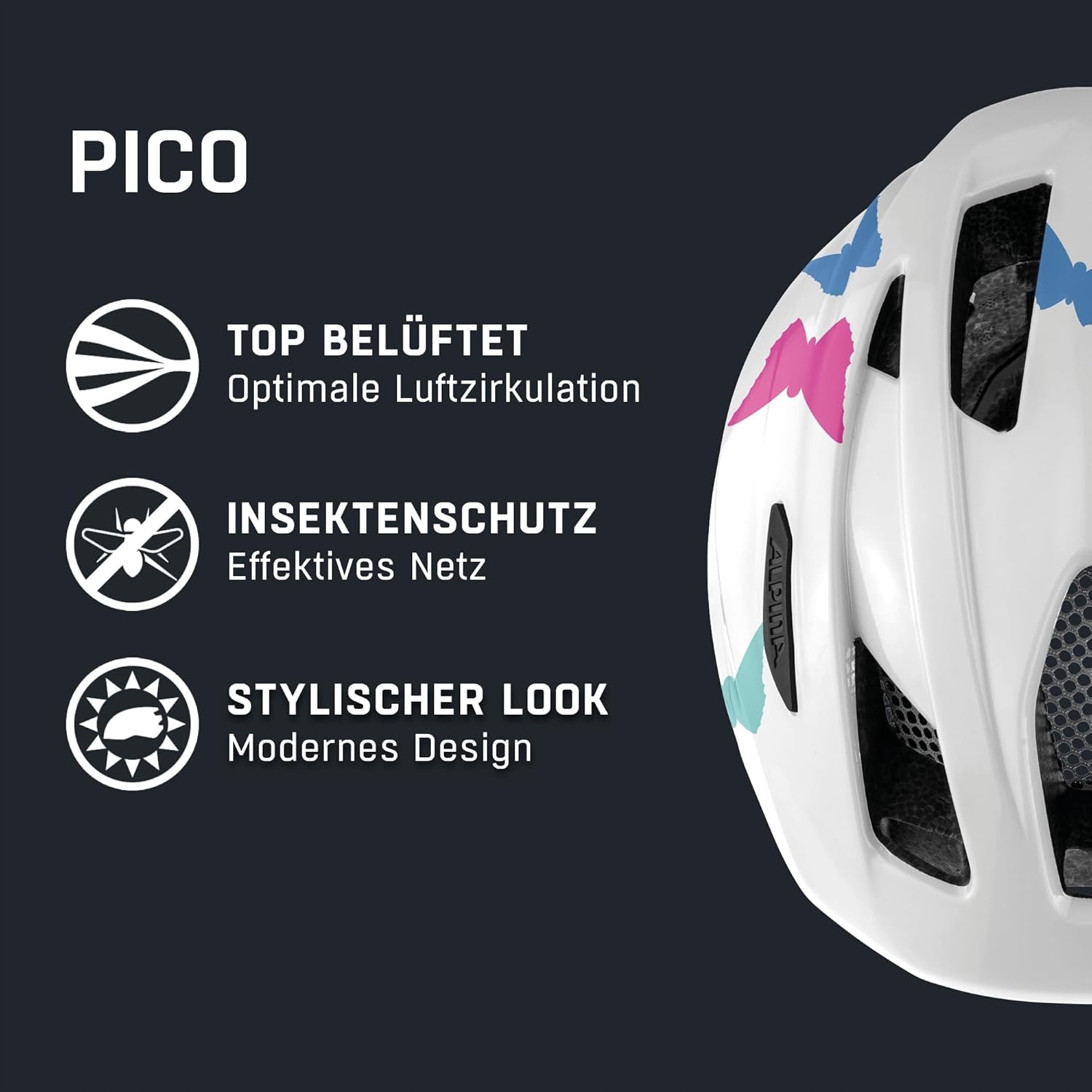 ALPINA PICO - велосипедний шолом для дітей і підлітків. Конструкція Inmold, Fly Net, численні вентиляційні отвори та високоякісна система регулювання роблять шолом безпечним та зручним у носінні.