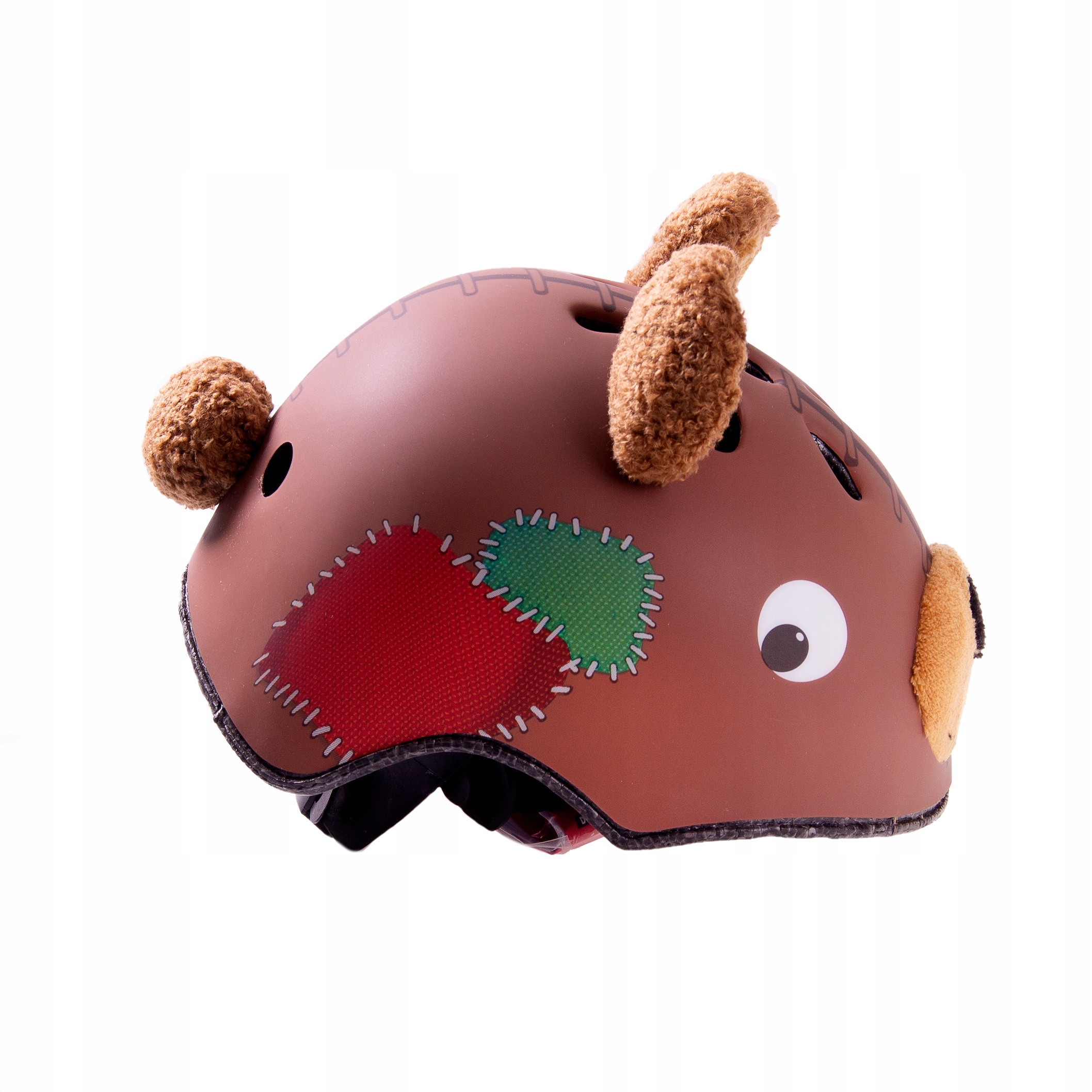 Крім того, шолом має багато отворів вентиляції, що забезпечує вільний потік повітря і зберігає голову дитини в холодному та сухому стані. Гладке регулювання забезпечує ідеальну придатність до голови дитини з окружністю 50-54 см. Цей шолом з коричневим мотивом плюшевого ведмедика стане чудовим вибором для кожного маленького шанувальника плюшевого ведмедика, який хоче мати стильний і безпечний шолом під час їзди на велосипеді.