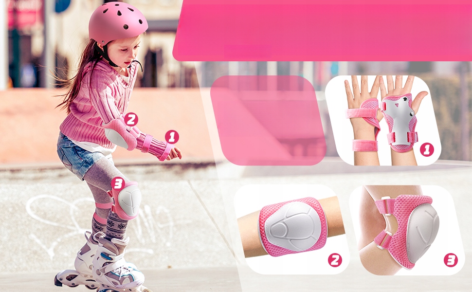 【Захисний набір 7 в 1】 Регульований набір наколінників і налокітників забезпечує повний захист ваших дітей і його легко носити. Включає 1 дитячий шолом, 2 наколінники, 2 налокітники та 2 щитки для зап’ястя.