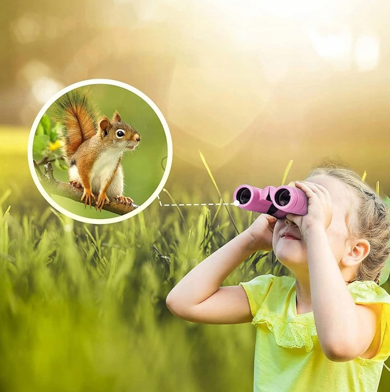 🔭【Дитячий міні-бінокль для вулиці з високою роздільною здатністю 8x21 (з ганчіркою для чистки об’єктива, сумка для зберігання, інструкція англійською мовою) – рожевий】⭐