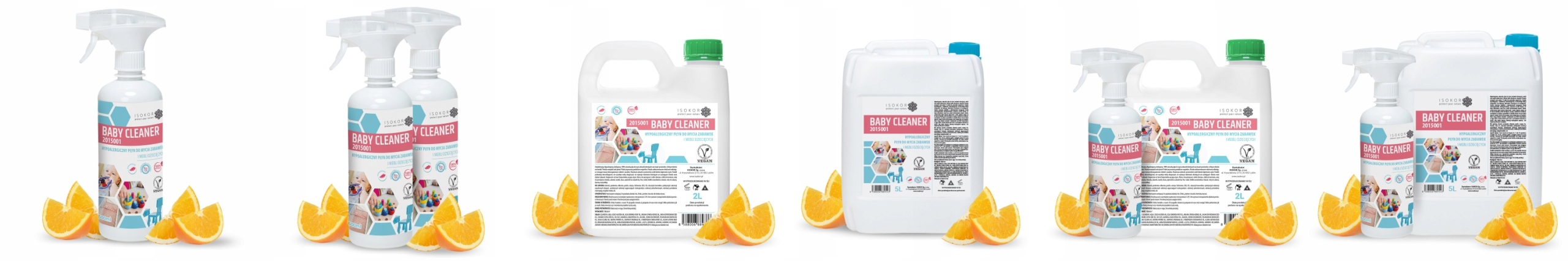 Складається на 100% з натуральних інгредієнти, рідина для миття дитячих іграшок, аксесуарів, меблів, текстилю та інших поверхонь, з якими контактують діти. Він має європейський знак якості V-Label для веганських продуктів.