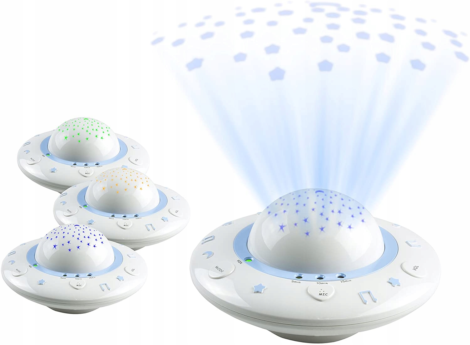 Коли ви ввімкнете дитячий проектор, він почне показувати зображення та відтворювати пісні. Ваша дитина легко і швидко засинає? Потім ви обираєте час гри у п’ять хвилин. Але ви також можете вибрати десять або п’ятнадцять хвилин, якщо потрібно.
