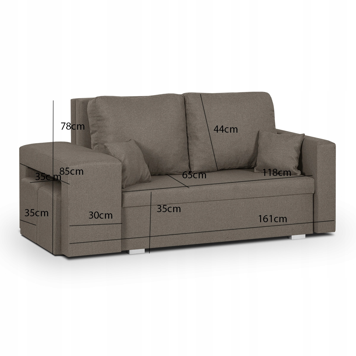 Диван має інтуїтивно зрозумілу систему розкладання, завдяки якій ви можете за кілька хвилин перетворити його на ліжко. Вся поверхня для сну виготовлена з високоякісного поролону, який покращує комфорт сну. Під сидінням є містке відділення для постільної білизни, куди можна помістити як постільну білизну, так і ковдри та подушки.