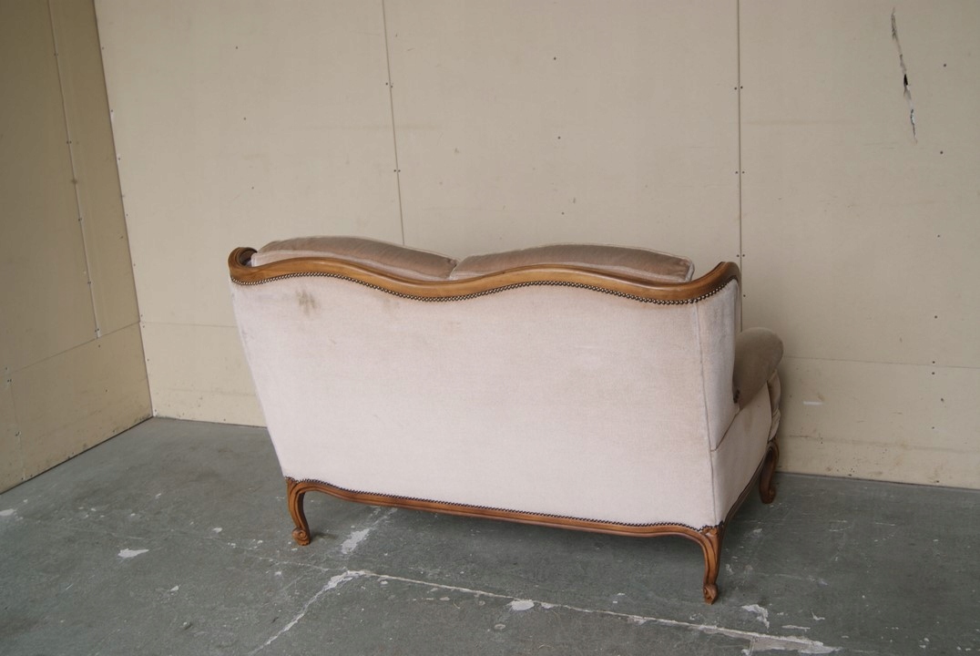 Стан дивана видно на фотографіях, його конструкція стабільна. Гарний стан матеріалу, потребує лише прання, невеликі пошкодження дерева.