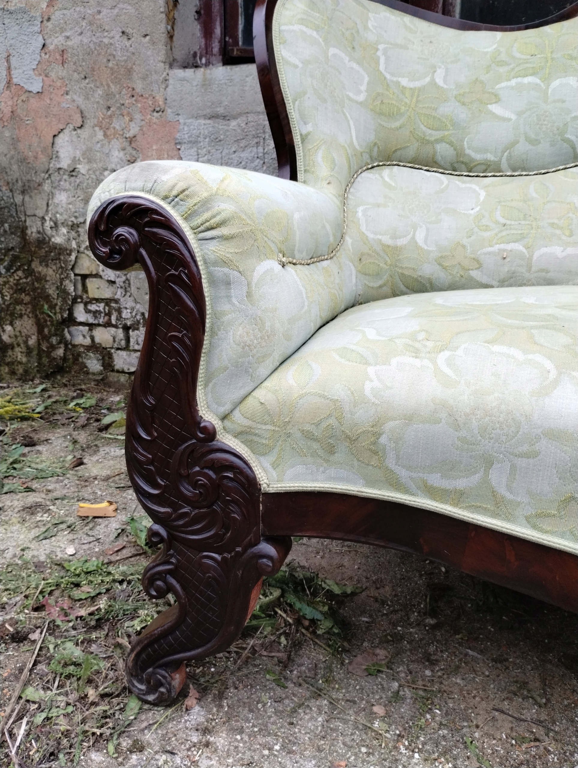 Диван середини 19 століття хоч і потребує ремонту, але радує своєю формою, яка ідеально вписується в характер бідермаєру, Луї-Філіпа та еклектичного інтер’єру. Походження з північної Німеччини, добротне виконання надає йому автентичного характеру, роблячи його справжнім антикваріатом з унікальним стилем. Розміри 180х75, висота 107.