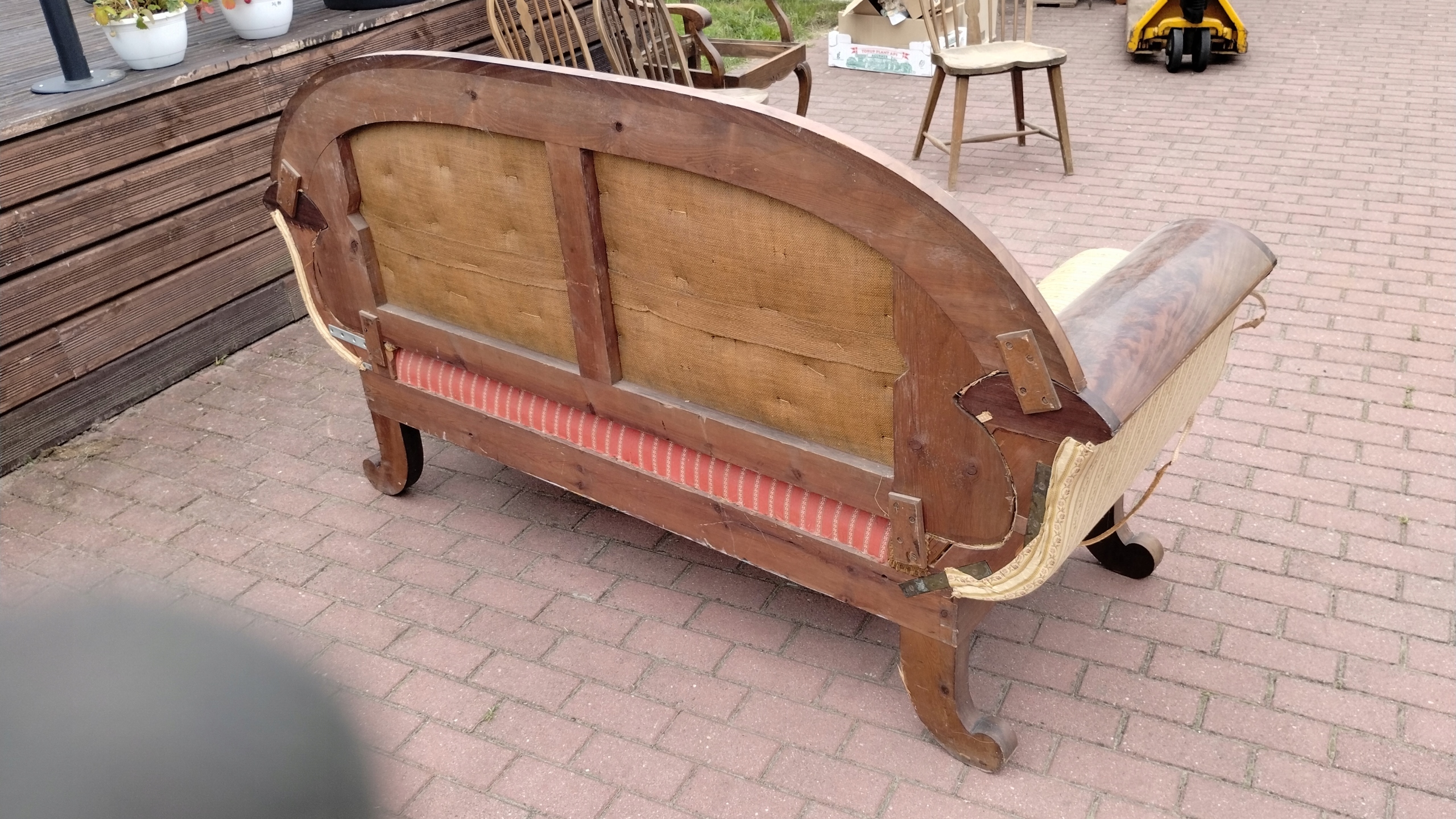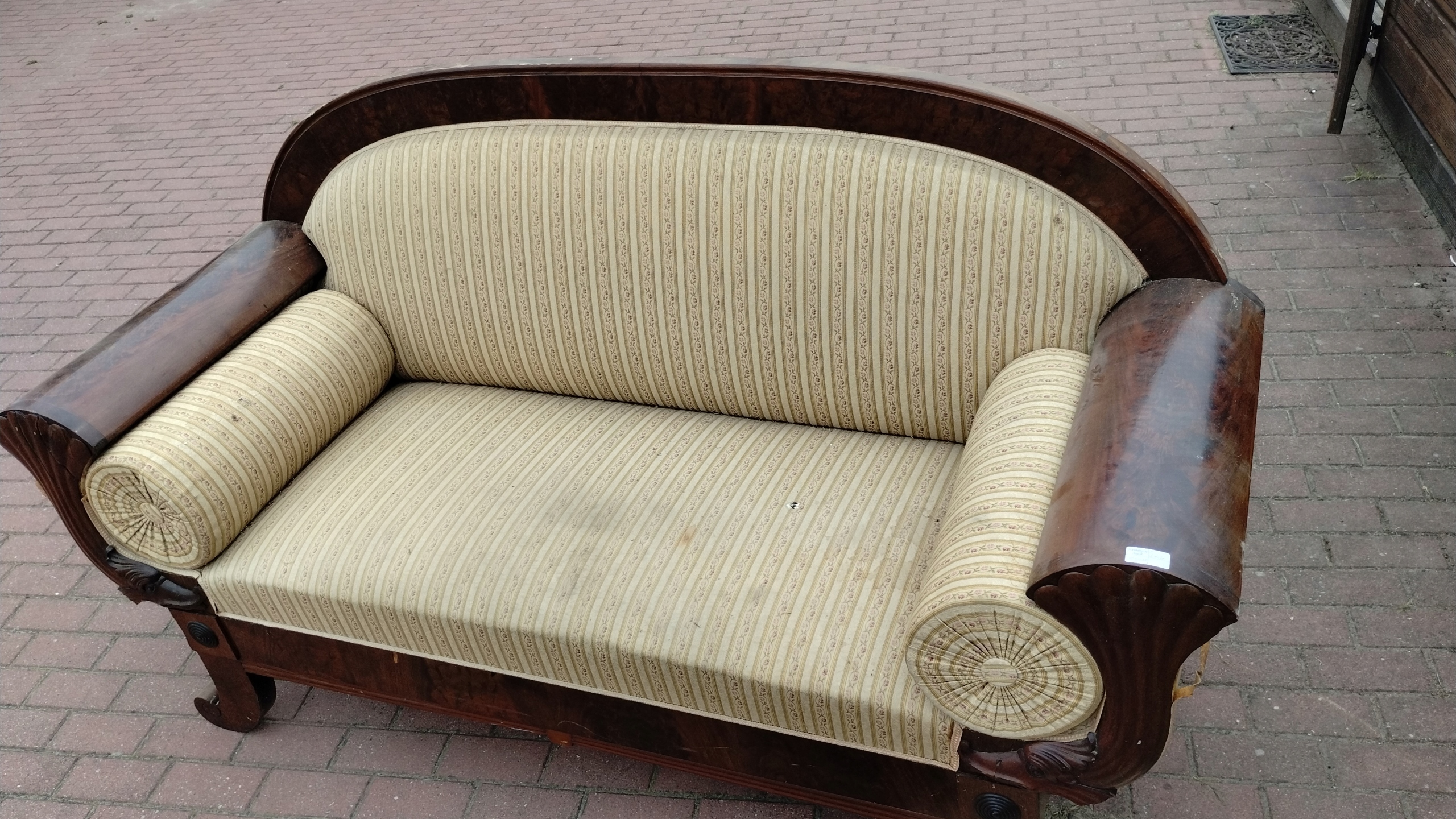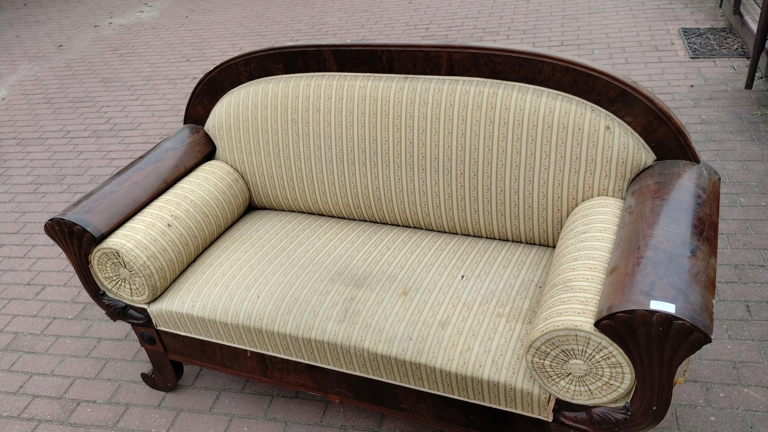 Диван бідермаєр з червоного дерева з роликами дельфін, 19 ст., старовинний