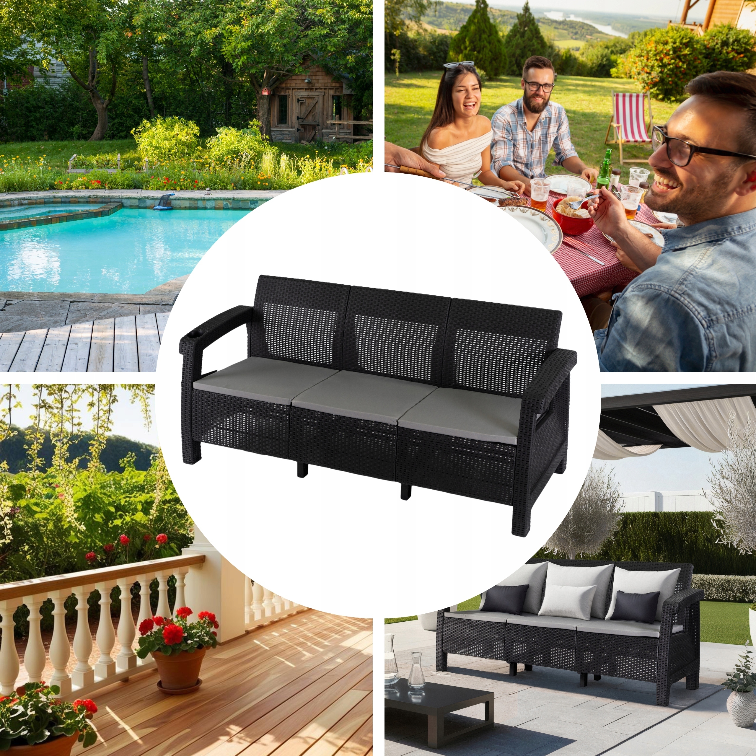 - Садовий диван Чорний кремінь + сірі подушки на сидіннях