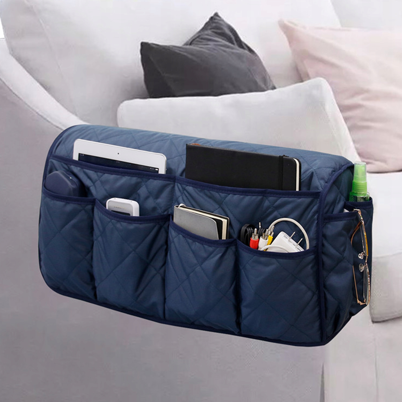 - Сумка для зберігання дивана краще організовувати щоденні предмети та організувати їх для запобігання втрат. Складний мішок для організатора дивана може бути гнучко використовувати вдома, подорожі чи офіс тощо. Він підходить для більшості диванів, крісел, S та стільців.