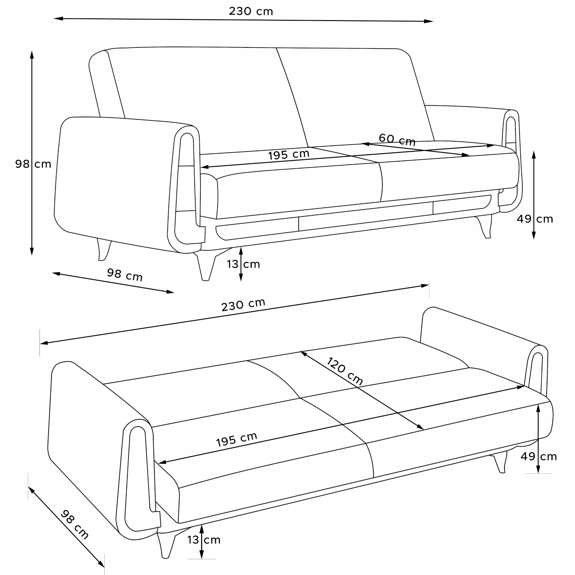 - Розміри сидіння (см): 195x55x60