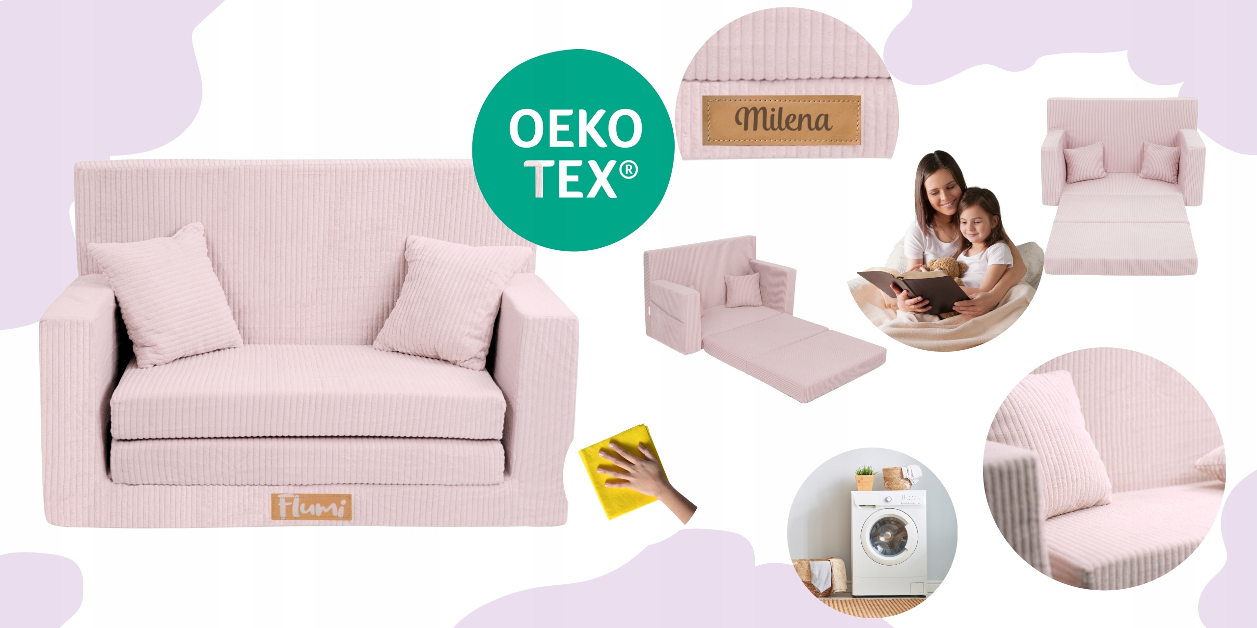 Диван Flumi є бестселером, який швидко стає улюбленим дитячим місцем. Він легкий, практичний і безпечний - ідеально підходить для дитячої кімнати, вітальні або ігрового куточка.