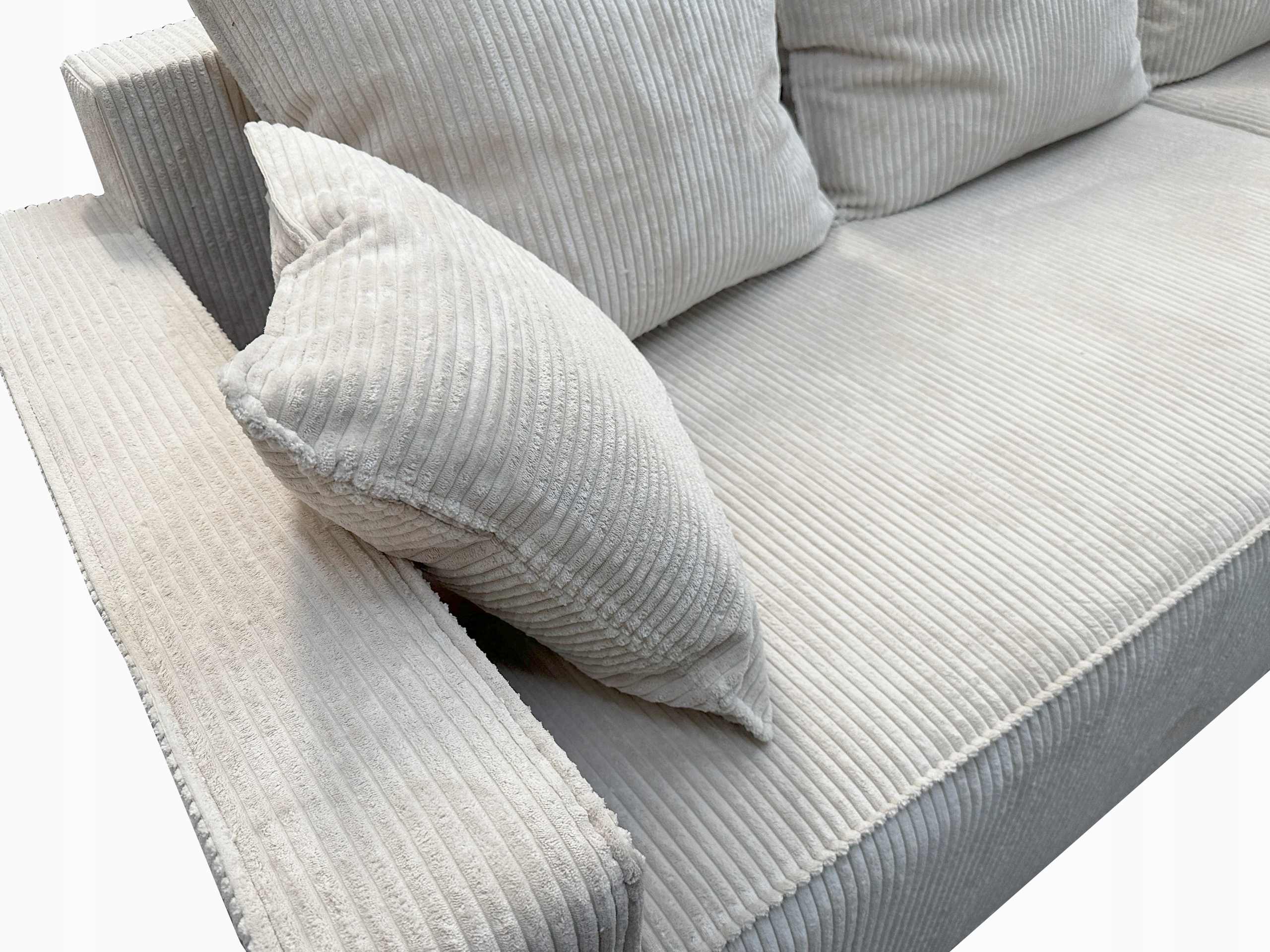 Вельвет, який використовується в кутку, має делікатну гофру, надзвичайно м’яку та приємну на дотик. Її витончена текстура підкреслюється делікатними смугами, що надає меблям унікальний текстурний характер. Це не тільки сидіння, але й елемент декору, який привертає увагу та спонукає до відпочинку.