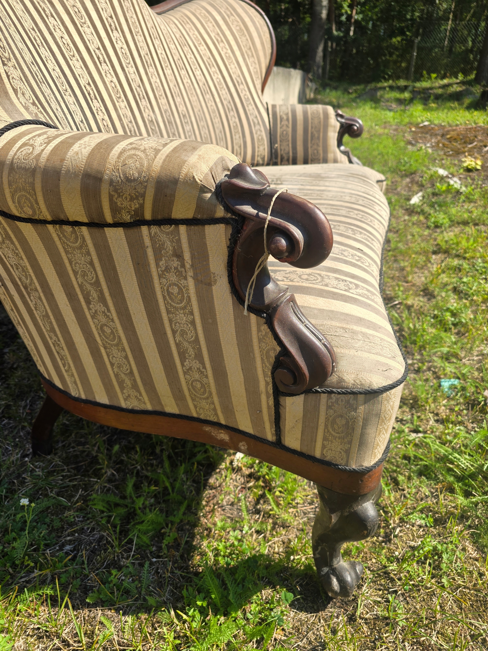 Диван Ludwik Filip з червоного дерева з мереживом, 19 століття, антикваріат