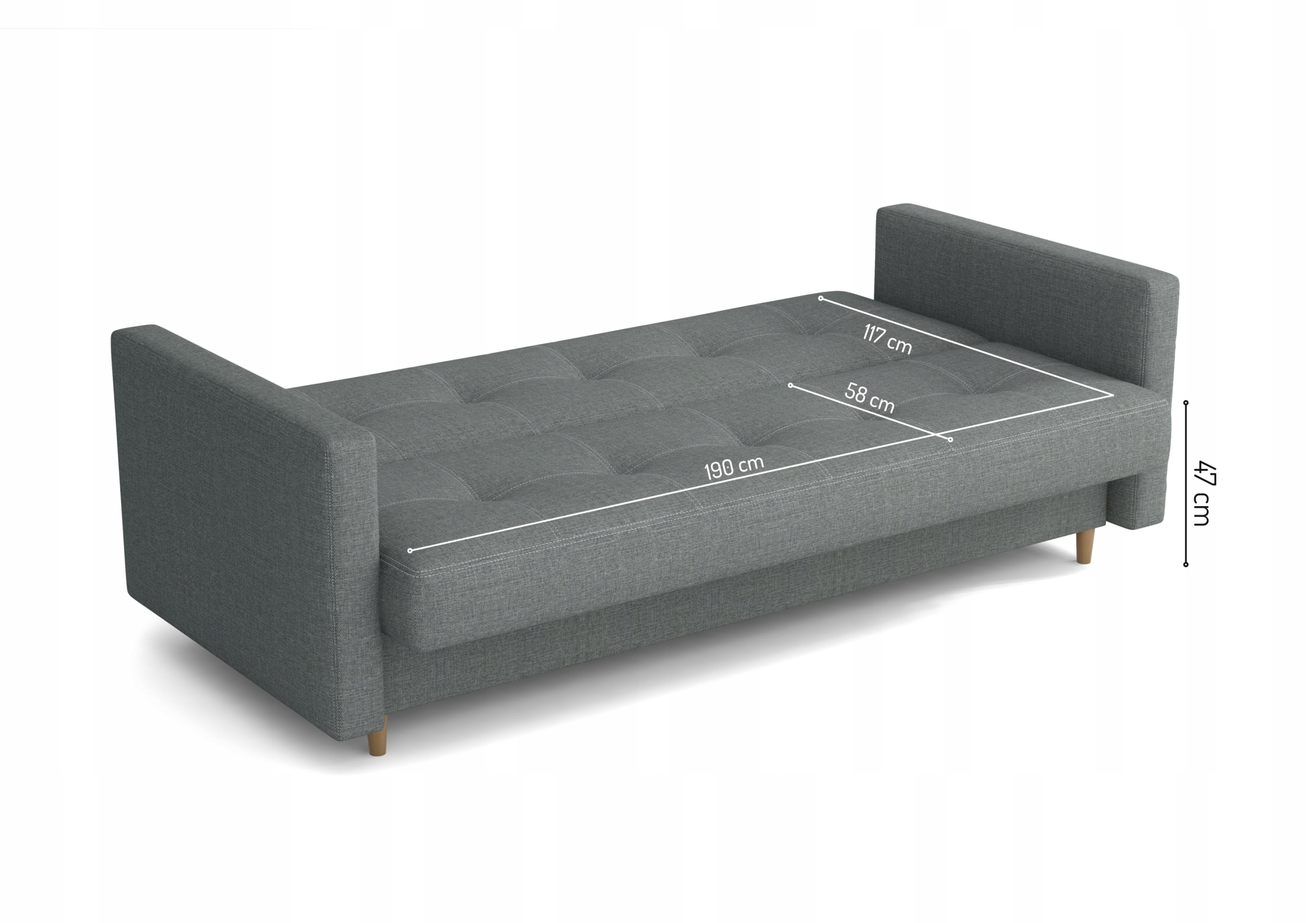 зручні меблі, виготовлені з особливою ретельністю та увагою до деталей, є ідеальною компромісною пропозицією для різноманітних потреб наших клієнтів. Крім сучасного та естетичного дизайну, він має безліч рішень, які викликають інтерес навіть у найвимогливіших користувачів. Звідки у вас така впевненість? Цей багатофункціональний предмет меблів — це більше, ніж просто приємний для ока диван! Завдяки встановленим спеціальним машинам, диван-ліжко НАДІЯ легко і швидко перетворюється на зручне ліжко розміром до 190 см х 120 см, з великим контейнером для постільної білизни.