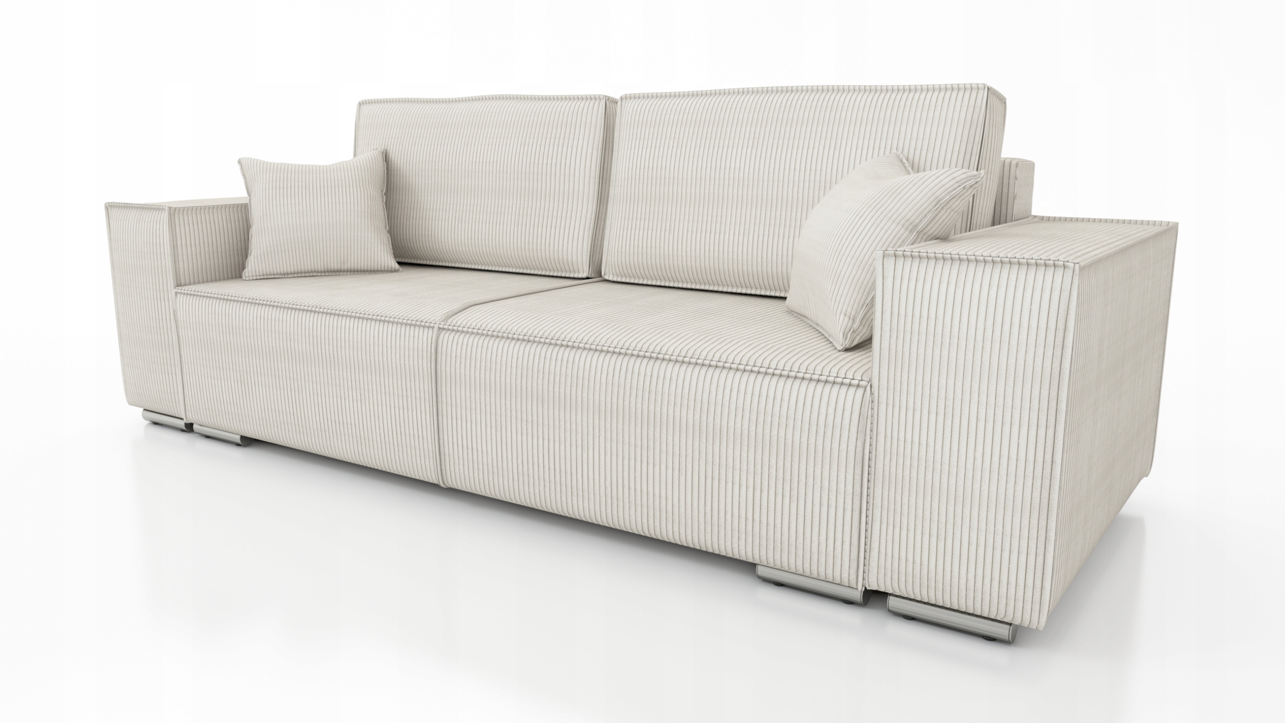 У дивані rico використовується тканина POSO - м'який велюровий матеріал з характерною структурою вельвету. Ніжки меблів виготовлені з хромованого металу, а ковзанки виготовлені з чорного пластику.