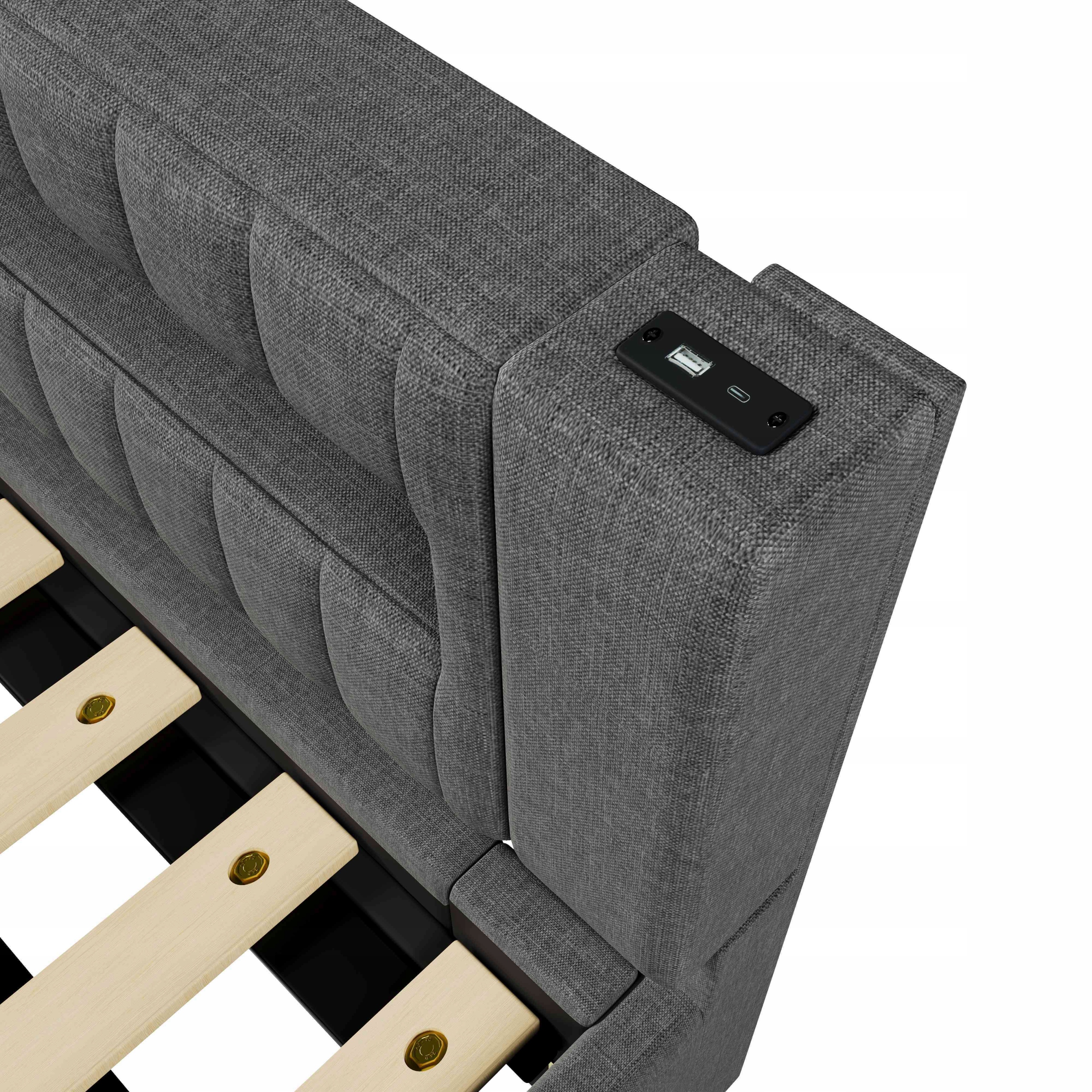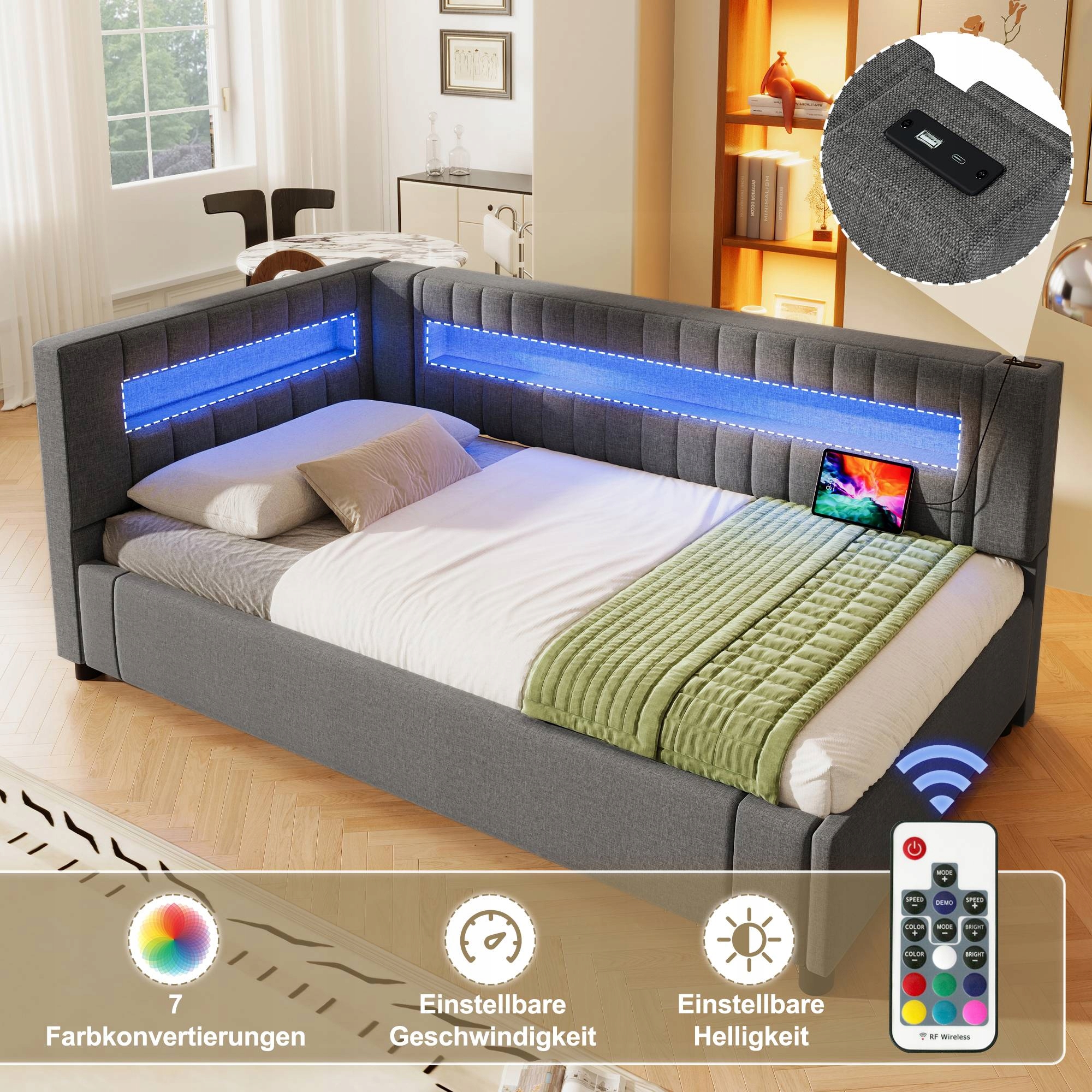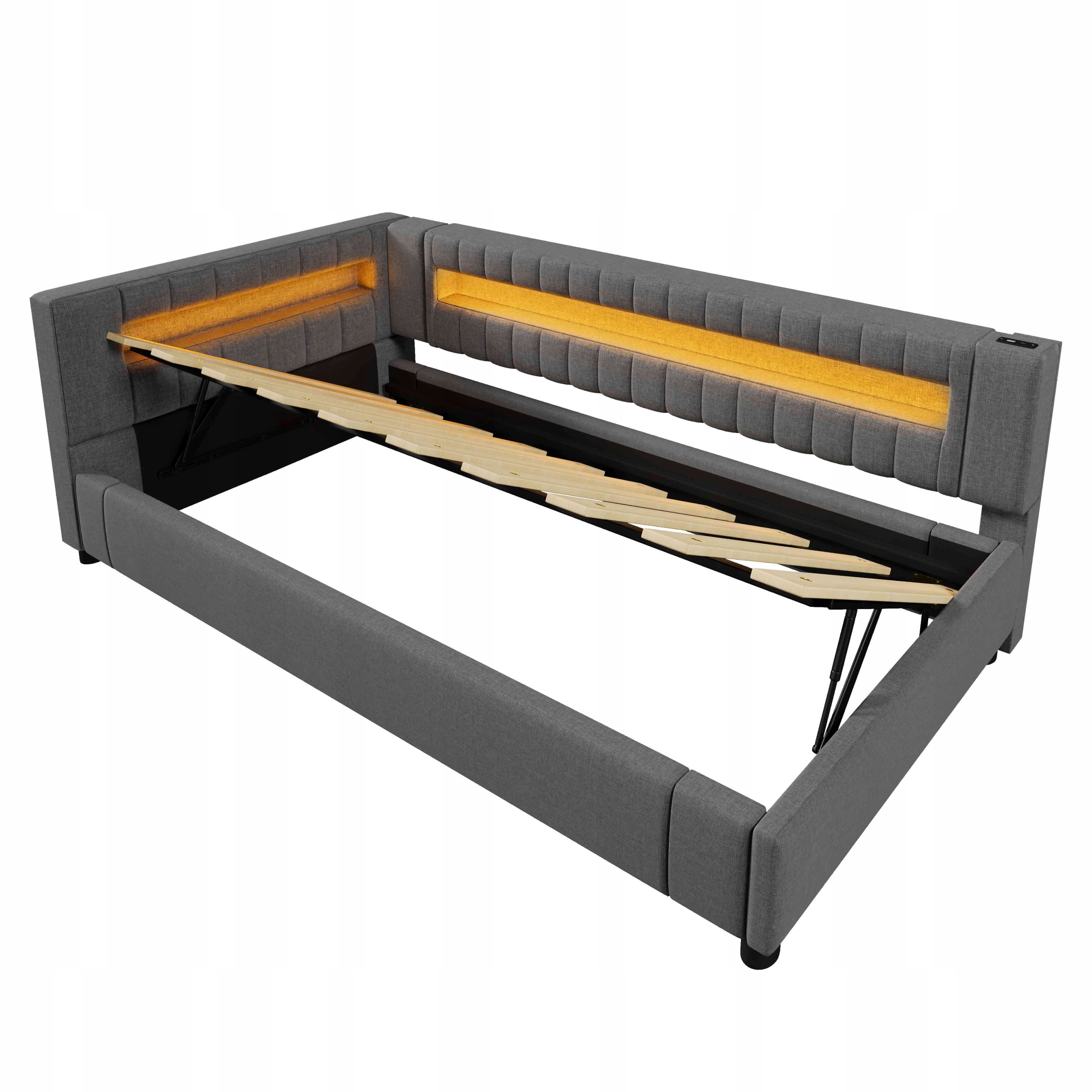 Щоденний диван, диван, розкладна ліжко, 90*200 см, світлодіодна світлова смуга з пультом дистанційного керування в кінці ліжка, гідравлічна опора, без матраца, USB + Type-C, білизна, сірий