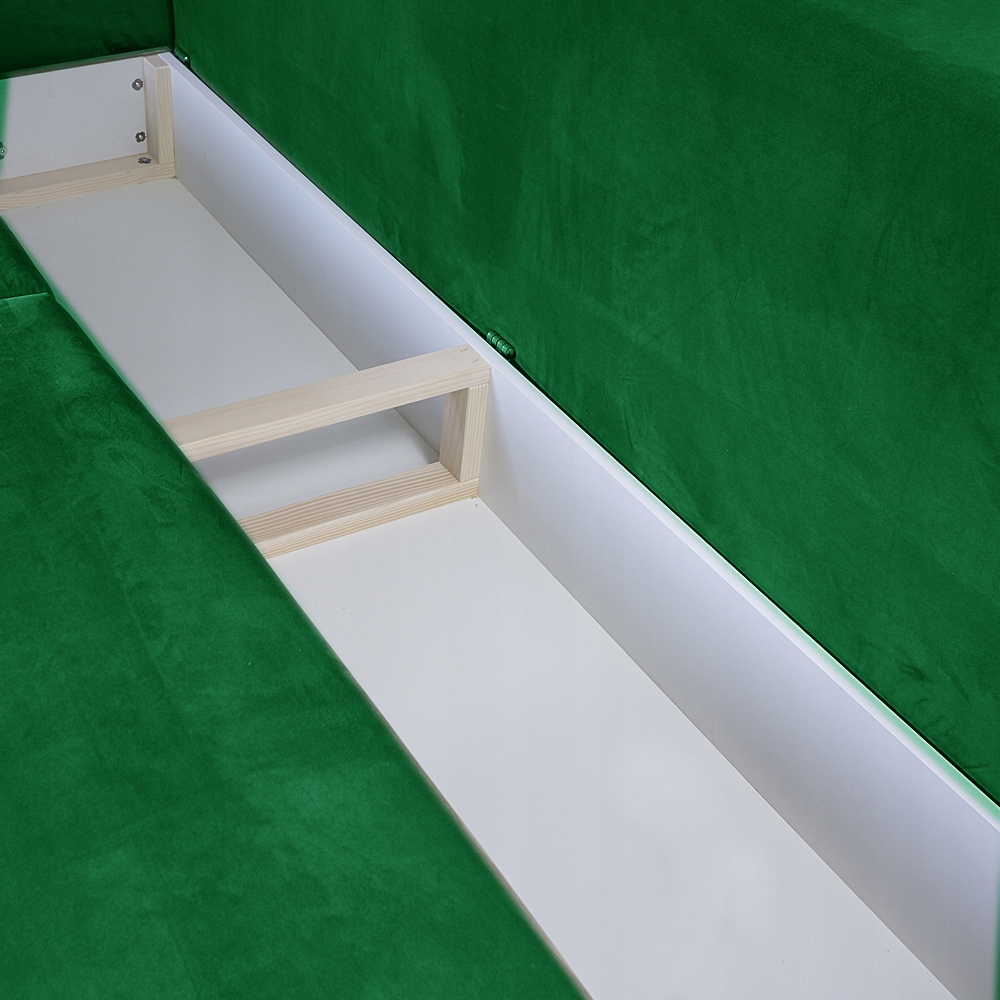 Оксамитові тканини мають гладку, м'яку та приємну на дотик поверхню, яка ніжно переливається на світлі, створюючи ефектні відблиски. Це універсальний матеріал в плані облаштування, відмінно підходить як для оббивки меблів, так і для елегантних, стильних і м'яких аксесуарів. Тканина також має спеціальне гідрофобне покриття, яке полегшує утримання дивана в чистоті.
