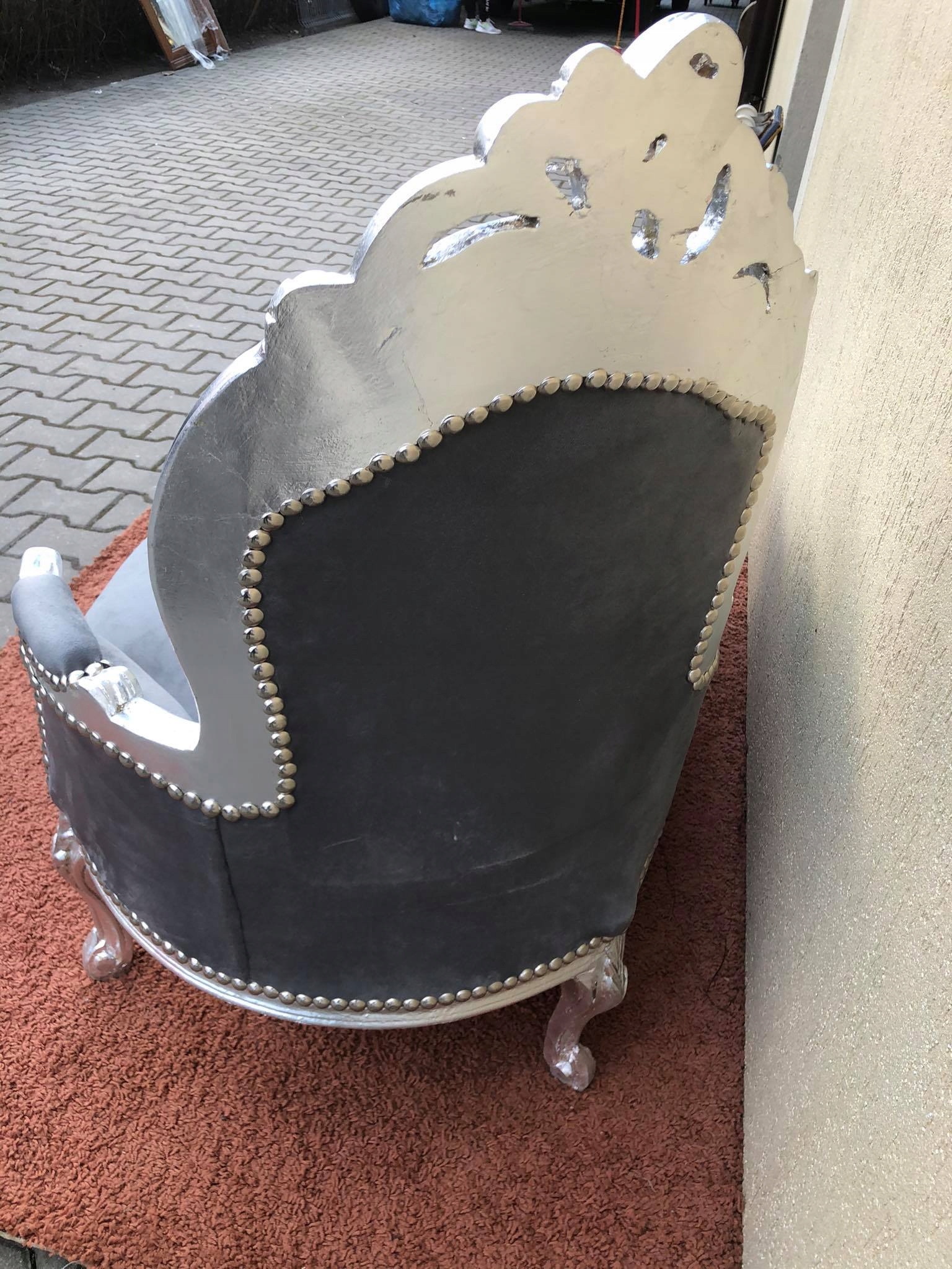 СІРА ВЕЛЮРОВА ОББИВКА З ГАРНОЮ СТИГАНОЮ СПИНКОЮ