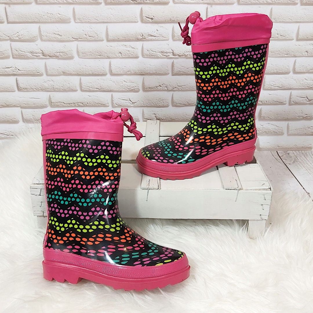 Зроблено з м'яких гумових свердловин на підошві, що не є, є практичною моделлю для дощових днів. Зручна текстильна вставка всередині галошів робить галоші приємними до стопи і легко ковзає на ноги. Зверху рядок, який дозволяє відповідати верхній окружності теля, щоб дощ не потрапив всередину. Потрібно -в гардеробі кожного малюка.