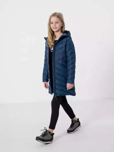 стьобане вниз дівоче борошно 4f з невеликим переднім логотипом . Він має синтетичну начинку, завдяки якому воно забезпечить оптимальний тепловий комфорт восени та зими.