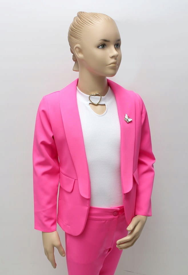 неоновий рожевий - це інтенсивний яскравий відтінок рожевого кольору, який надає куртку дівочого та енергійного характеру. Це колір, який привертає увагу і ідеально підходить для більш сміливих стилізацій. Елементи, що імітують кишені, додають дівочого персонажа до піджака і вводять безкоштовний акцент. Хоча вони можуть бути лише декоративними, вони дають стильному характеру. Броżка у формі метелика - це чарівна і дівоча деталь, яка додає куртки витонченість і легкість. Довгий рукав робить куртку придатною для більш прохолодних днів, при цьому даючи дівочу стильність елегантності та тепла. Така куртка в неоновому рожевому кольорі з імітаційними кишенями та виводком метелика буде ідеальною для дівчини, яка любить виділятися та експериментувати з модою. Додавши дівочий гардероб і стиль, він стане привабливим елементом одягу.