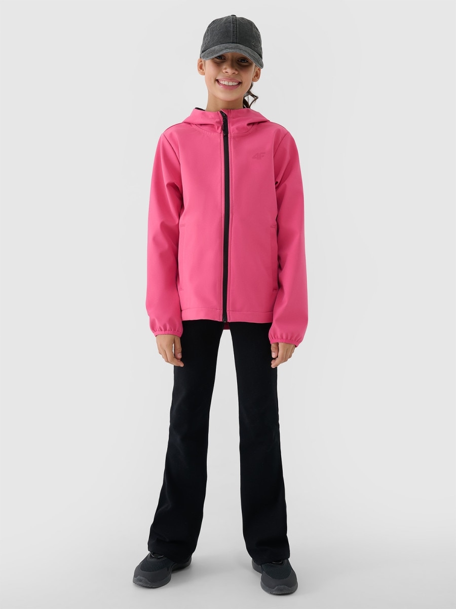 Softshell jacket for a girl 4f 4fjwss25TSOFF305 - Detailed features: Cut: regular: regular, which conveniently adapts to the silhouettecondar Dominted with a breathable retrofobic coating of outer material reduces the absorption of moisture -special design and properties of the Softshell material (Windstopper) ensure effective protection against the pressure of wind -integrated cap Main castle with an internal tile for the anti -wire without additional regulation of the Zeglasie -BlasieMeMBAN Neodry 5000/3000 protects against low rainfall or snow