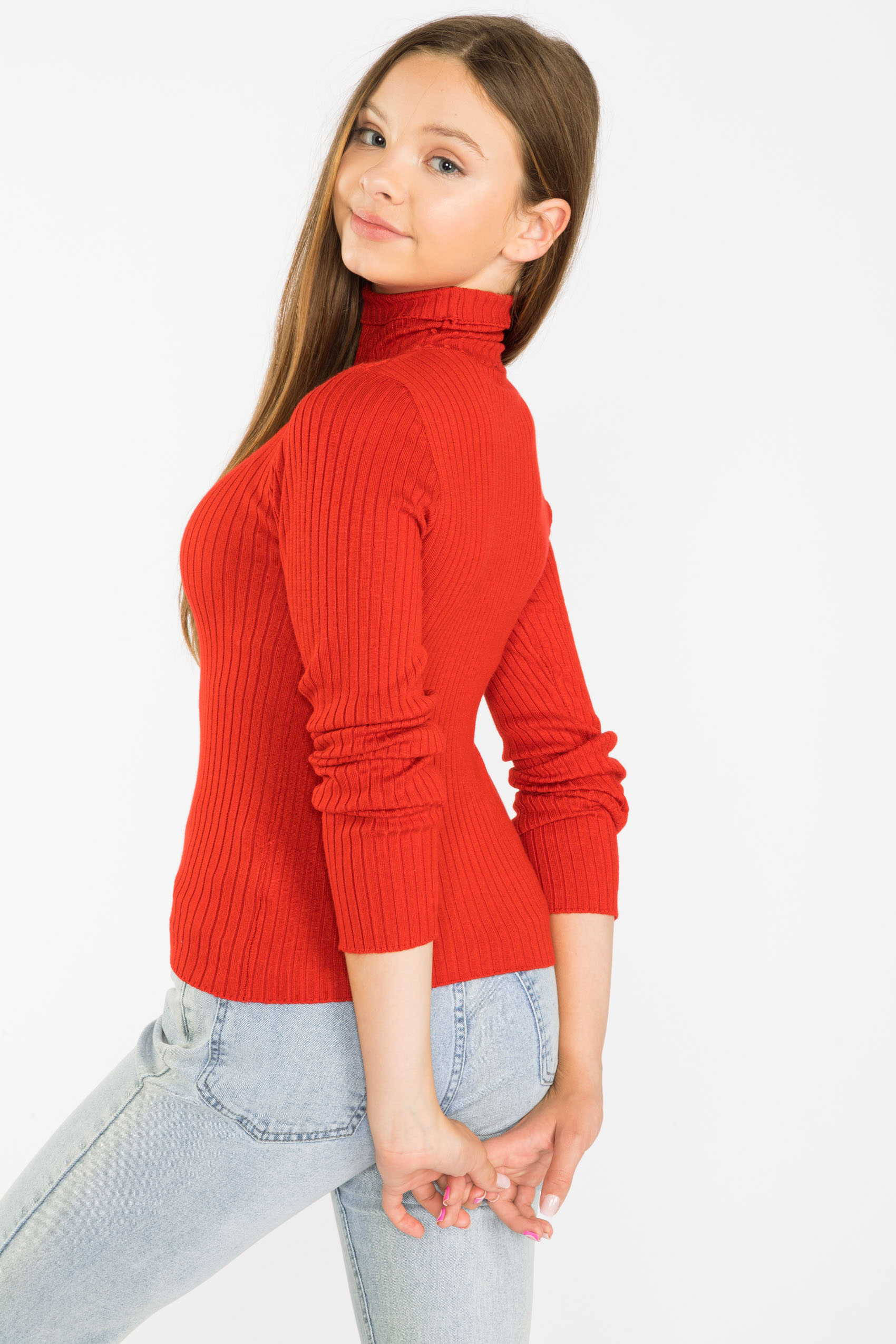 Червона дівоча ребриста водолазка - розмір 140