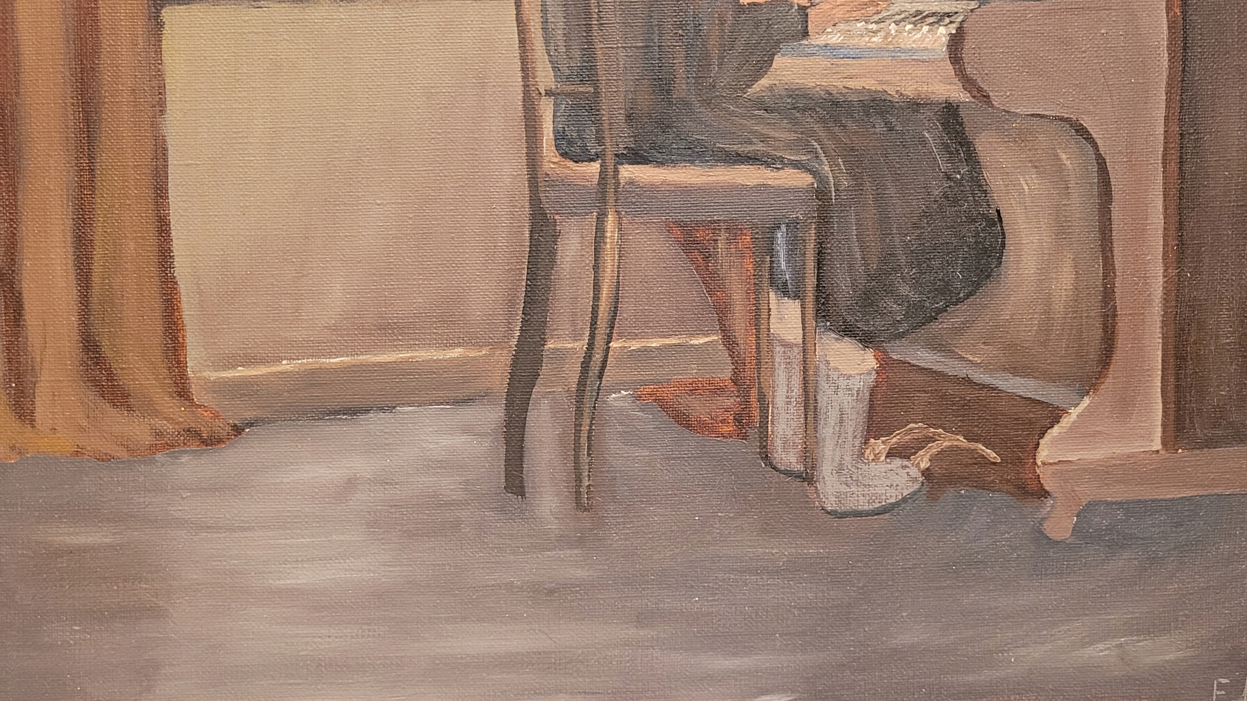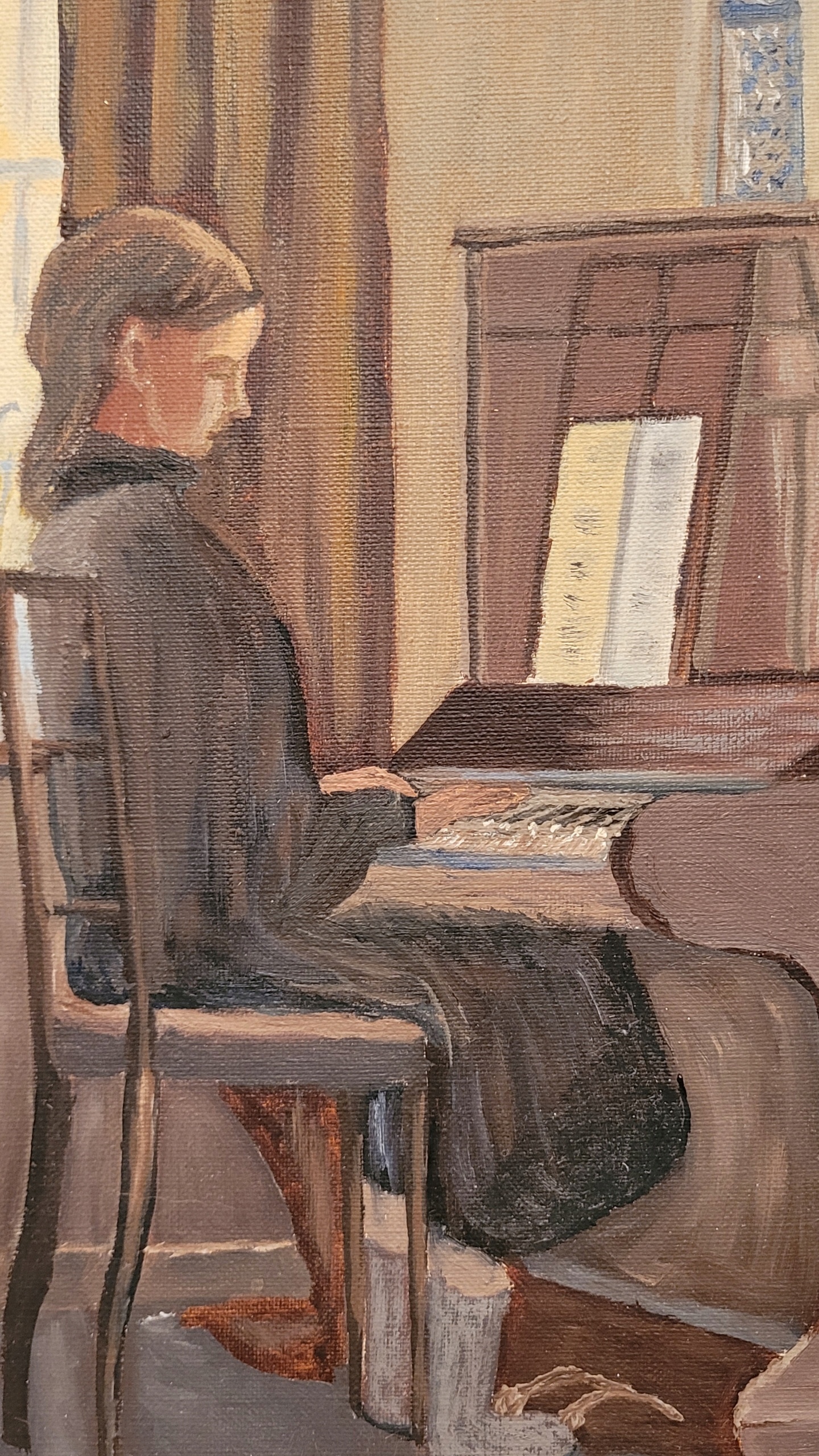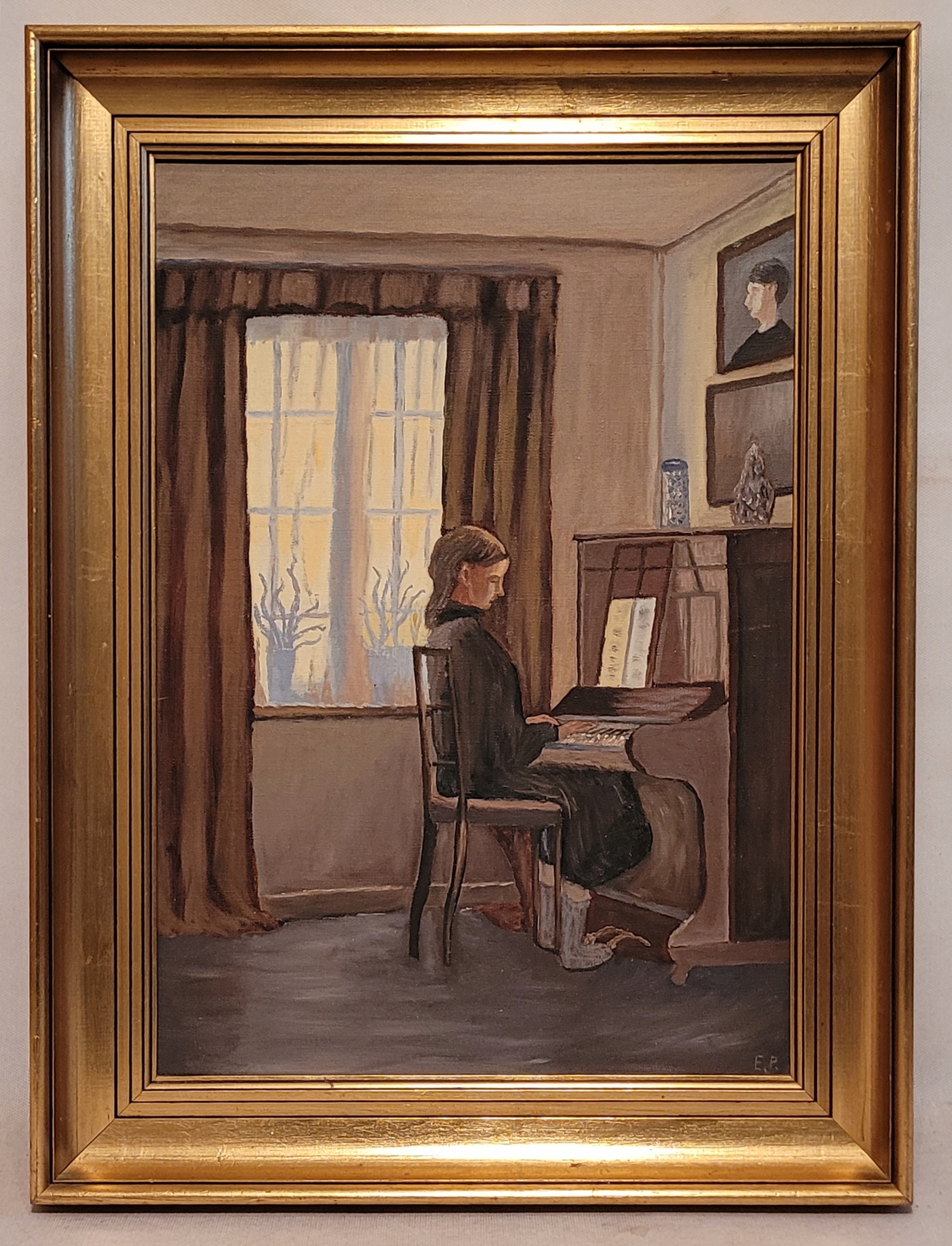 Тема продажу - це прекрасна, стара картина нафти "Дівчина на фортепіано". - після 1945 р.