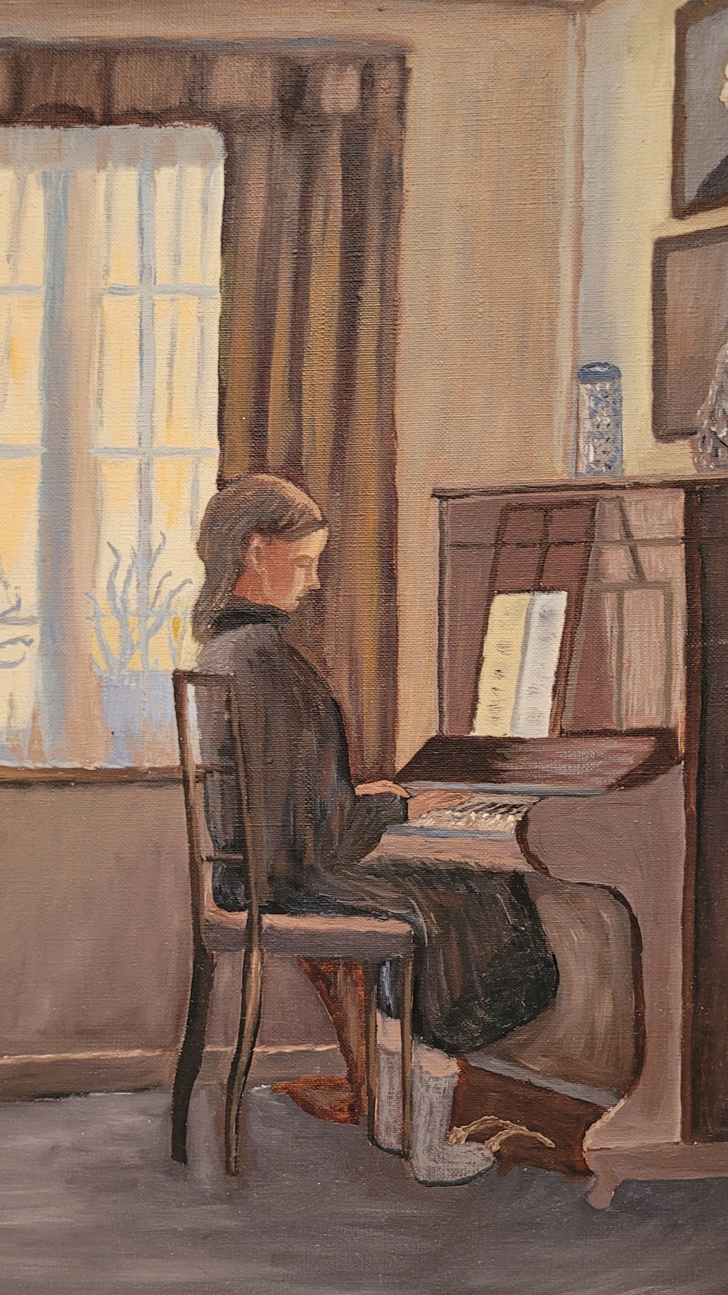 "Дівчина на фортепіано", стара, підписана картина нафти.