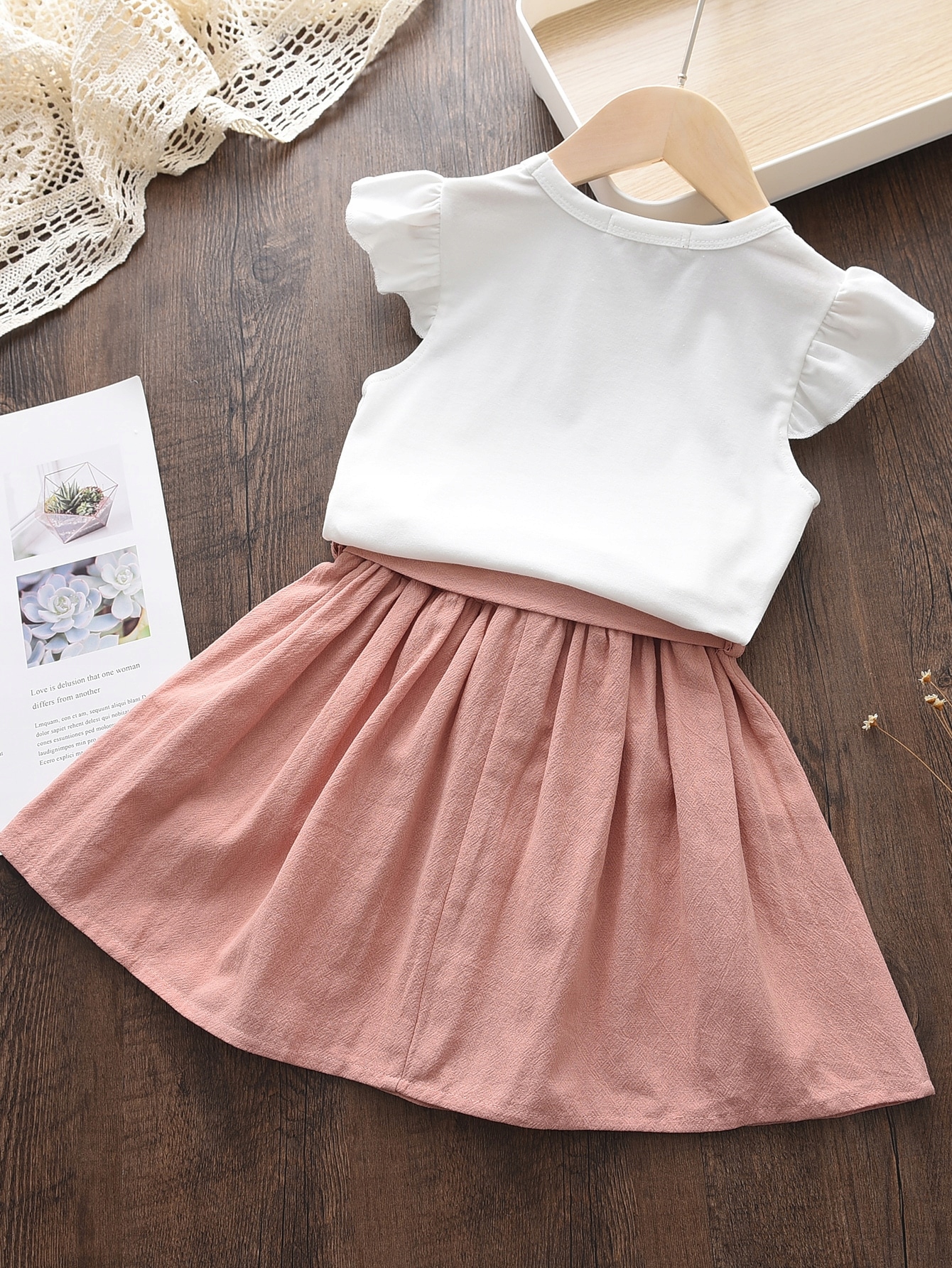 Дівчина встановлена блузка + спідниця з гнучкою повсякденною талією Shein 130