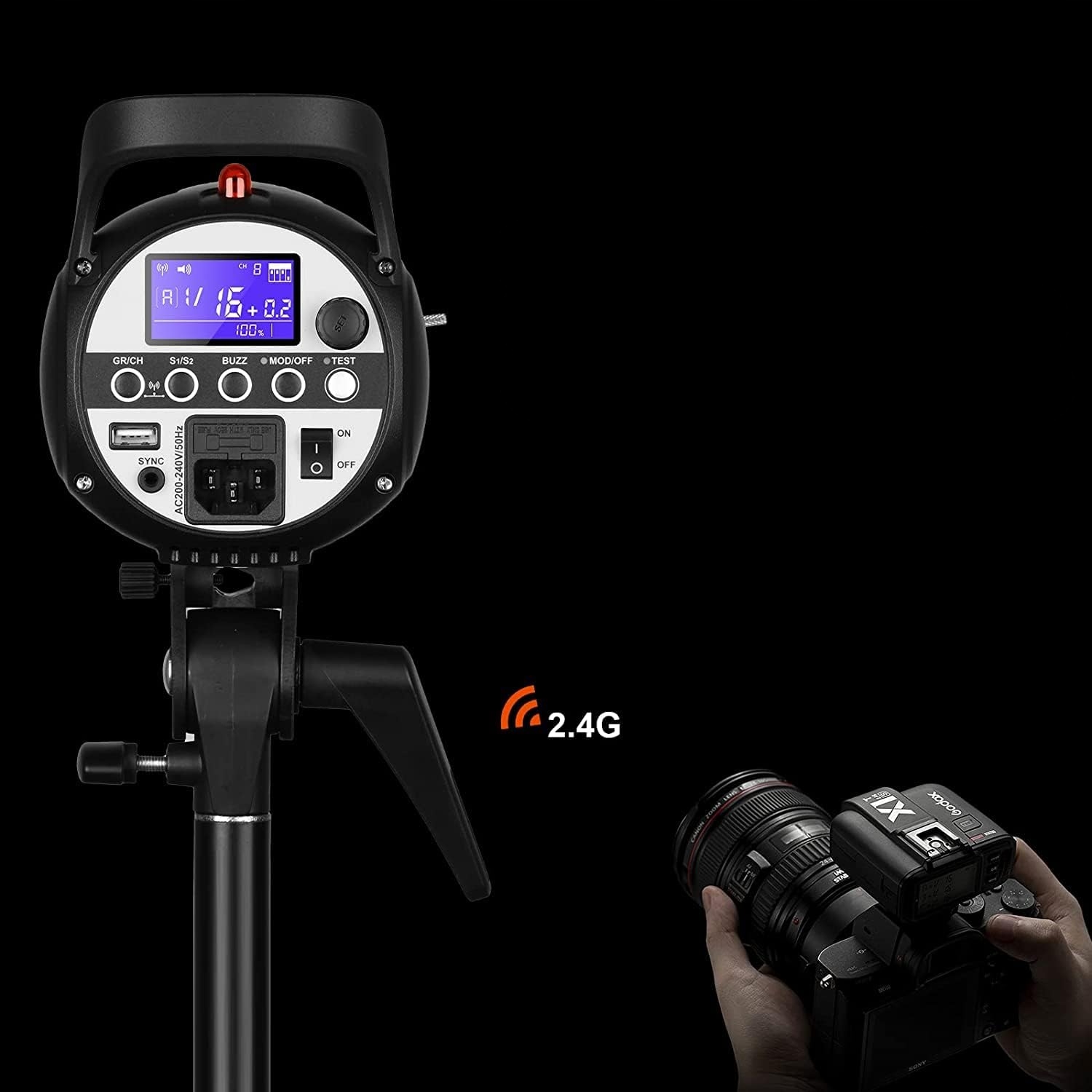 Серія Skii Skii Streplate Інтегрує бездротову систему x 2.4 G. Інтегрований приймач у систему X сумісна з тригерами X1T, XPRO та A1. Необов’язковий пульт дистанційного керування XT16 або FT-16 дозволяє керувати потужністю спалаху.