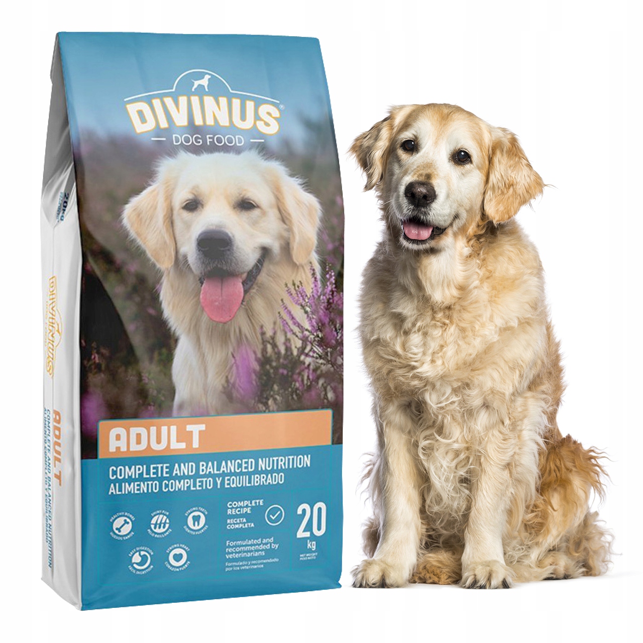 Кожна собака вимагає особливої уваги. Також з точки зору дієти! Divinus - високоякісний корм для дорослих собак різного рівня активності, багатий вітамінами і мінералами. Високий вміст м'яса та продуктів тваринного походження (32%) гарантує відмінні смакові якості страви. Завдяки збалансованому рецепту корм легко засвоюється, а шерсть наших вихованців стає блискучою та м’якою. Це повноцінна, легкозасвоювана та смачна їжа, яка задовольняє енергетичні потреби, особливо таких порід, як німецькі вівчарки, лабрадори та татранська вівчарка.