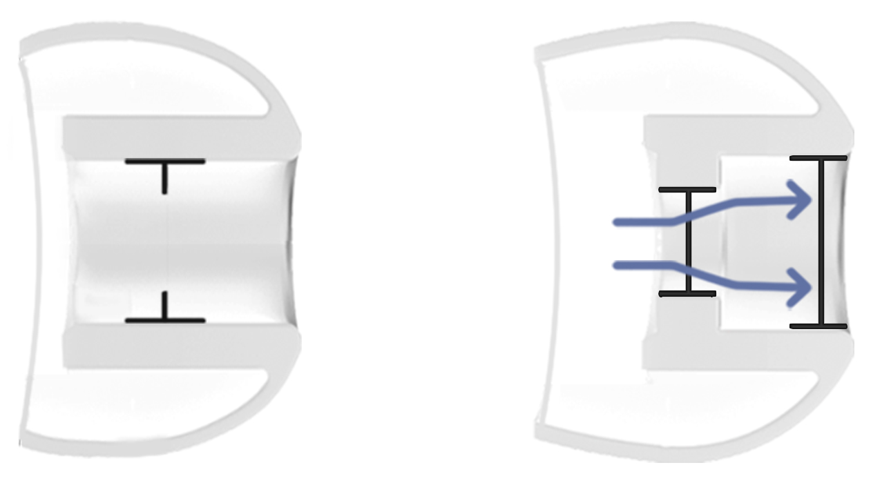 Конструкція серцевини навушників має на 65% більший діаметр у верхній частині порівняно з нижньою частиною, яка розташована на рукаві для навушників. Цей дизайн забезпечує покращення як надвисоких, так і низьких тонів.