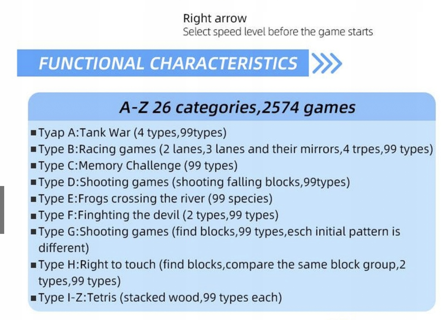 Годинник має такі ігри, як TETRIS, CAR RACING, ігри для пам’яті, ігри зі стрільбою та інші ігри.