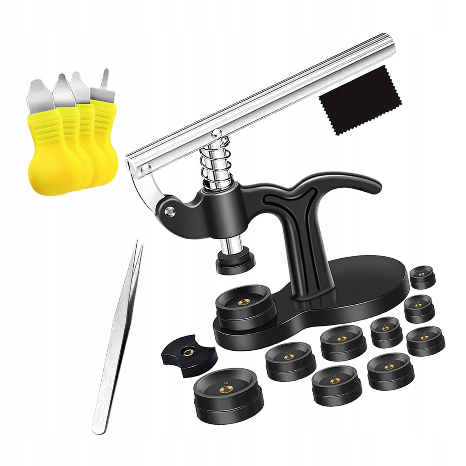 [Набір для ремонту годинника]: цей набір інструментів для пресування годинника включає 1 закривач задньої кришки годинника, 12 плашок, 4 інструменти для відкриття годинника, 1 серветку для витирання та 1 пінцет. Це повний набір для всіх потреб у ремонті й обслуговуванні годинника.