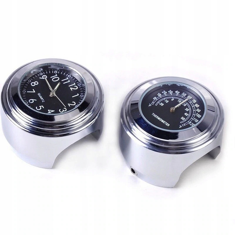 елегантний хром годинник і термометр майже на кожному кермі. Включає з ключем Allen для монтажу та гумки на кермі. Люмінесцентний