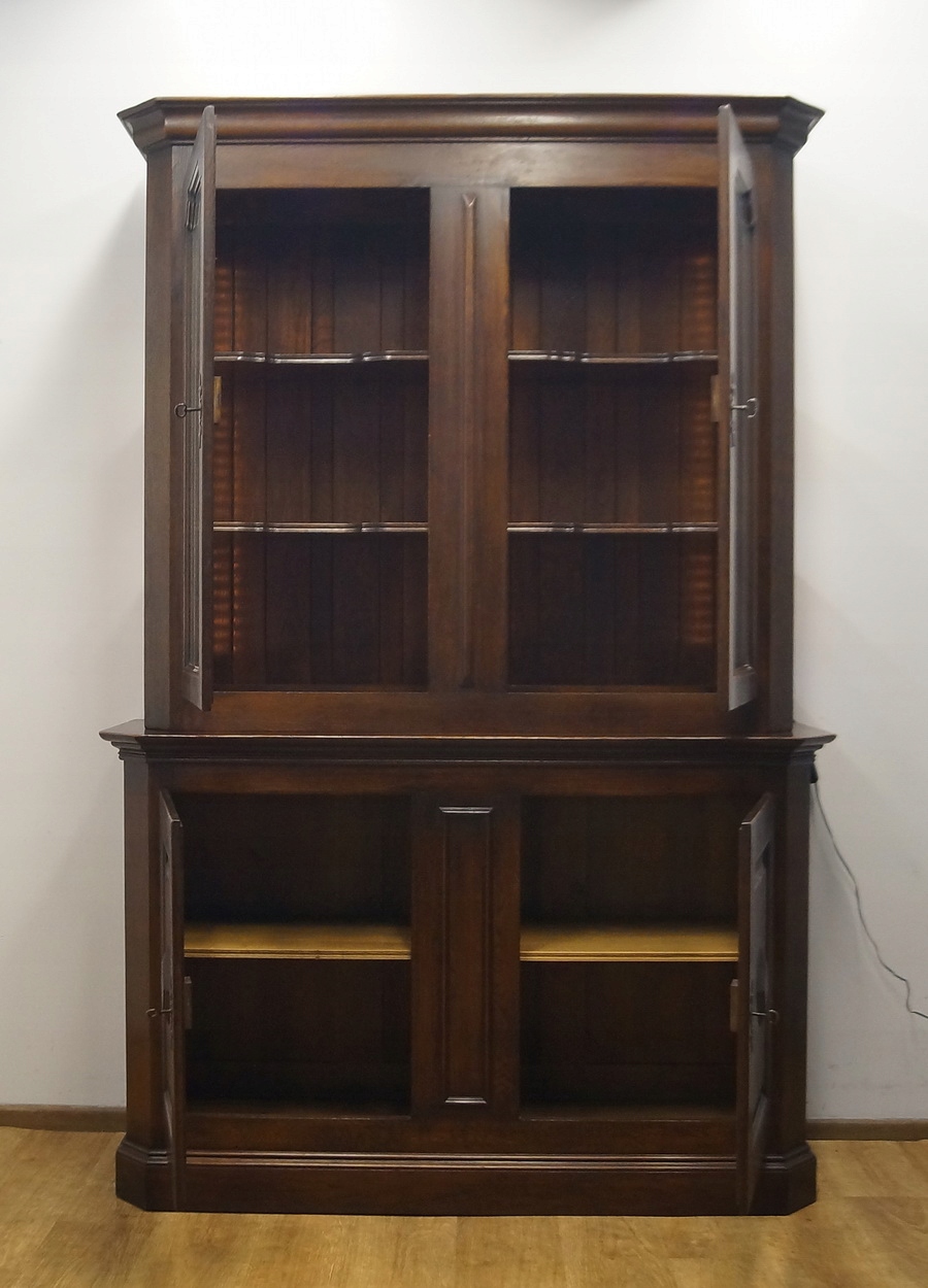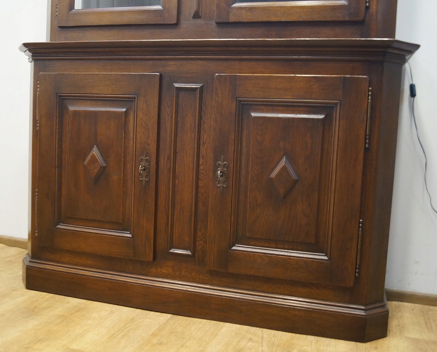 Вітрина має дві скляні дверцята у верхній частині, ця частина підсвічується.
