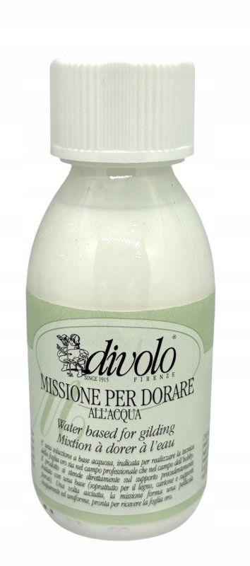 Суміш для позолоти на водній основі DIVOLO — це спеціальний клей кремоподібної консистенції, призначений для позолоти, який використовується для наклеювання золота, срібла чи інших металевих пластинок на різні декоративні поверхні.