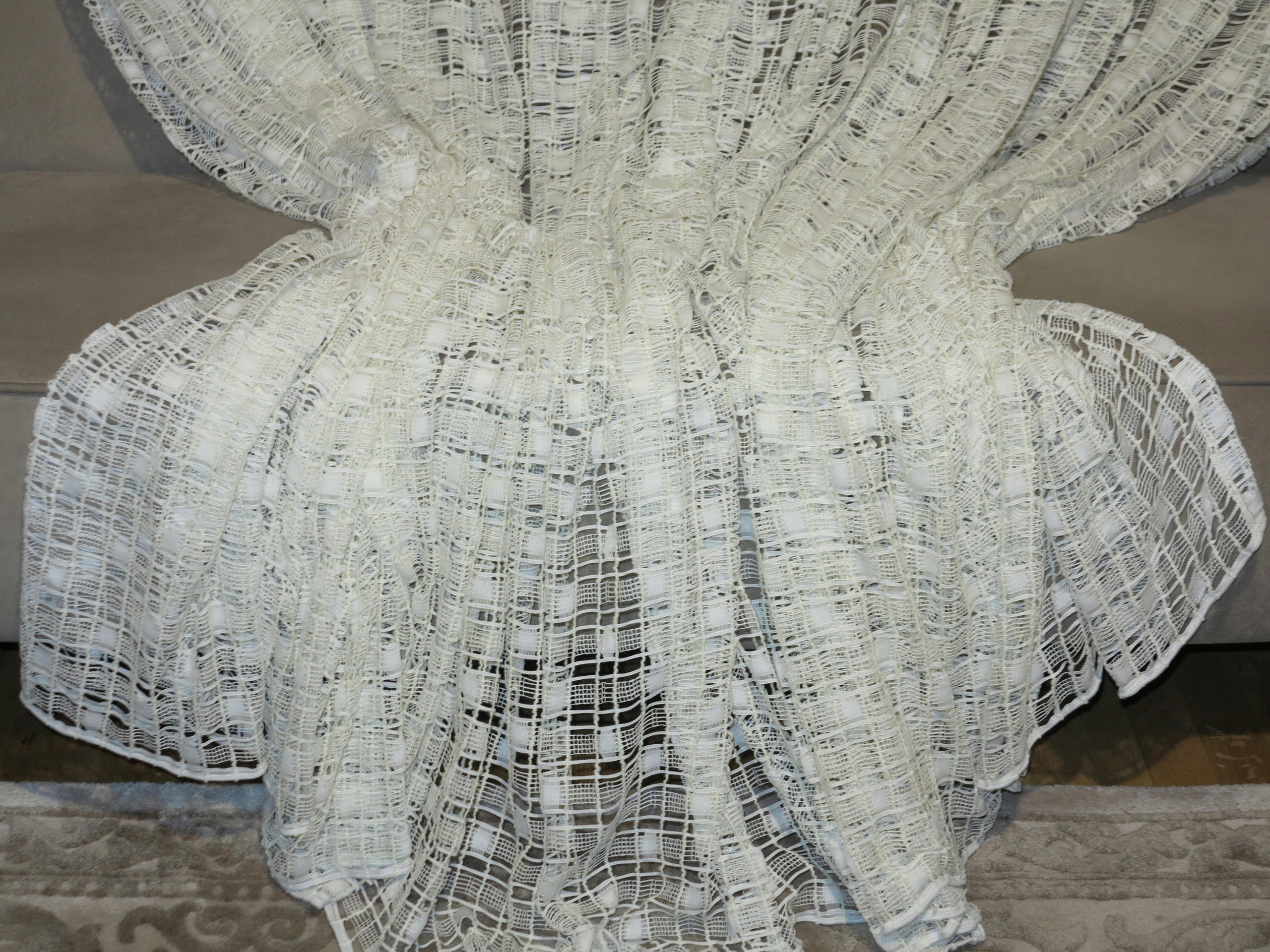 TO THE MANOR - ЧУДОВУ ШТОРУ, ПОВНІСТЮ ЗГОТОВЛЕНУ З НІМЕЦЬКОГО ВАЖКОГО, ЩІЛЬНОГО, СТИХАТОГО МЕРЕЖИВА, ЩО СПАДАЄ, З ВЕЛИКИМИ СІТКАМИ. КОЛІР ЕКРЮ