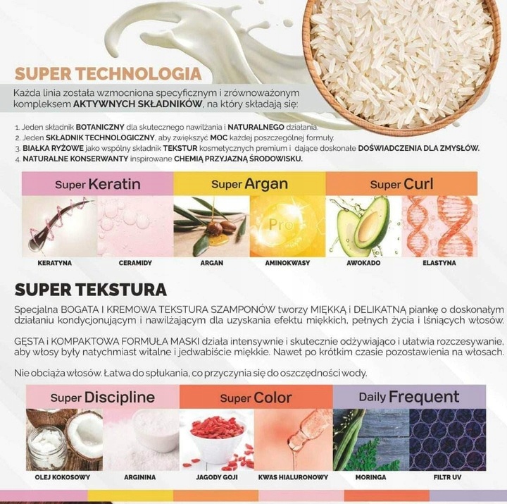 - Рисовий білок : живить і зволожує, роблячи волосся м'якими та повними