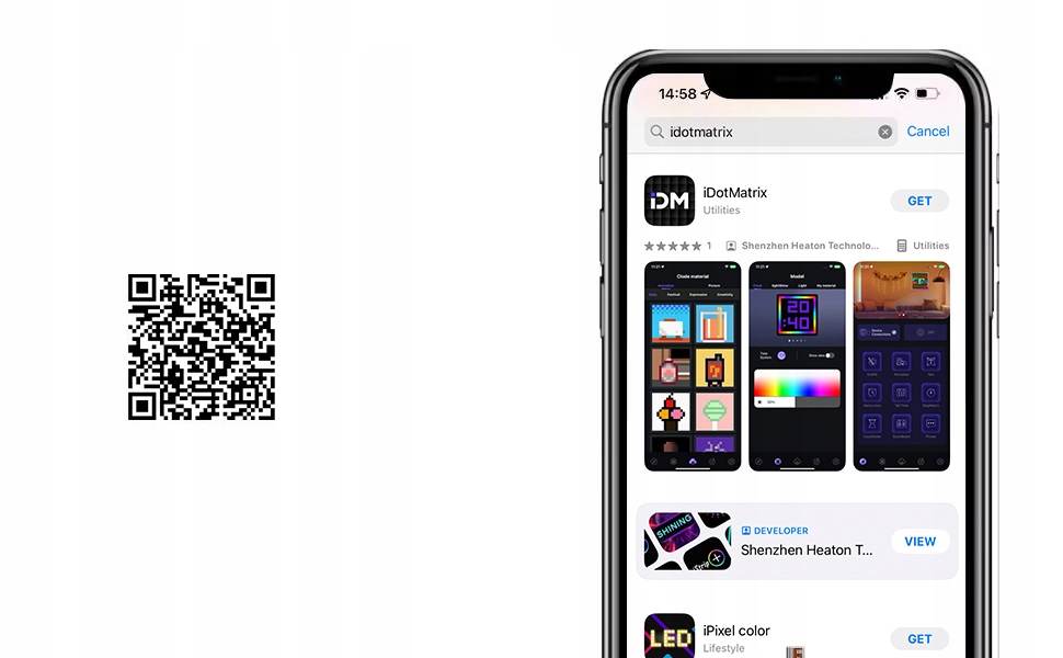- 🌟 Легкість створіть будь -яке піксельне мистецтво за допомогою програми iDotMatrix або сфотографуйте та відображайте його на екрані матриці. Ви також можете ввести повідомлення або відобразити вибраний QR -код. Найголовніше, що ви можете шукати потрібний проект у величезній Інтернет -галереї Idotmatrix, що містить понад мільйон творів мистецтва та взаємодіяти з іншими любителями мистецтва пікселів у всьому світі. 4 Ви також можете використовувати його як персоналізовану прикрасу, і його анімація додасть блиску кімнати для вечірок, зустрічей чи зустрічей з друзями. 4 Це допомагає збільшити трафік в магазині, привертаючи увагу клієнтів