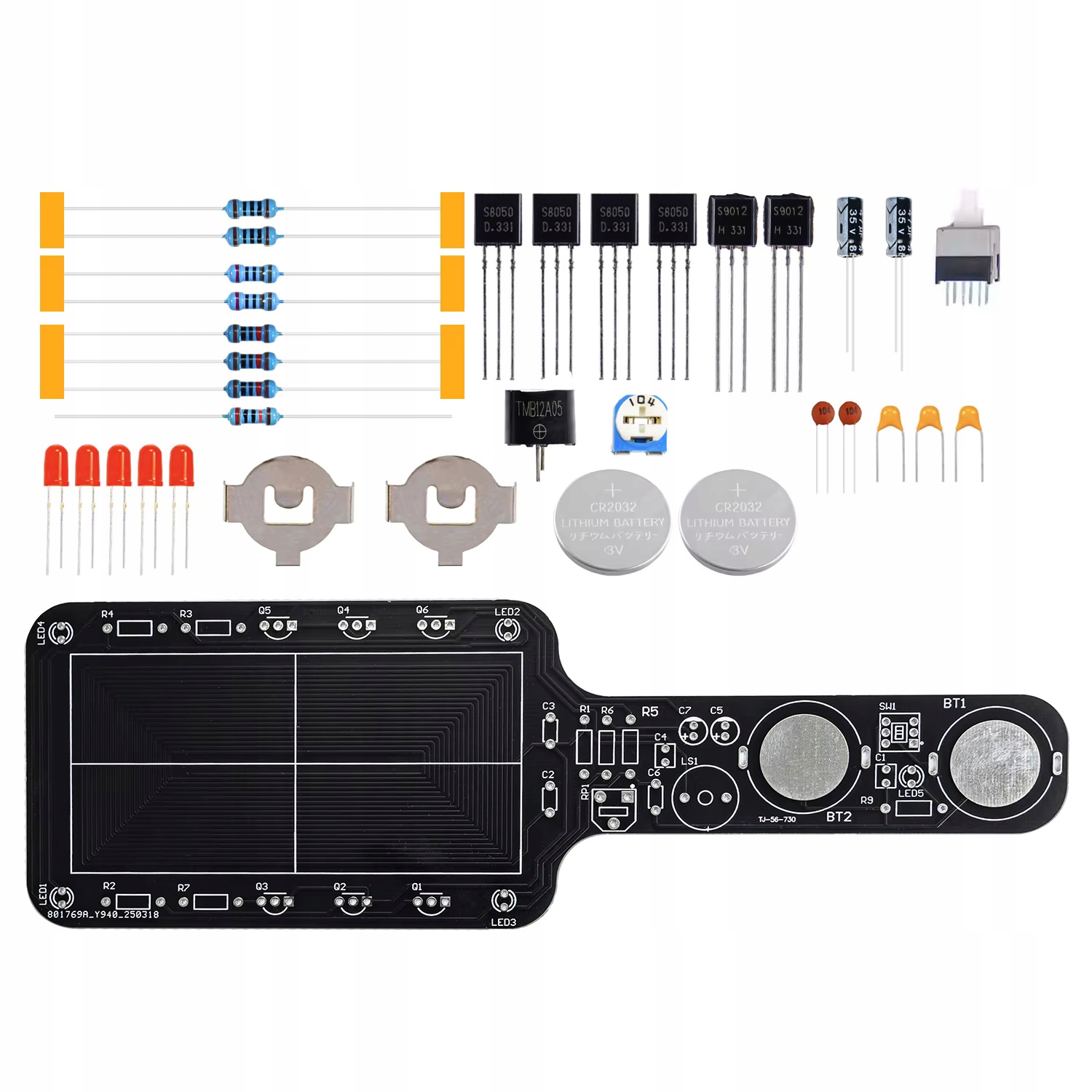 Набір для самостійного збирання міні-металошукача зі звуковим сигналом і світлодіодом. Система живиться від 6 В постійного струму і ідеально підходить для навчання паянню та основам електроніки.