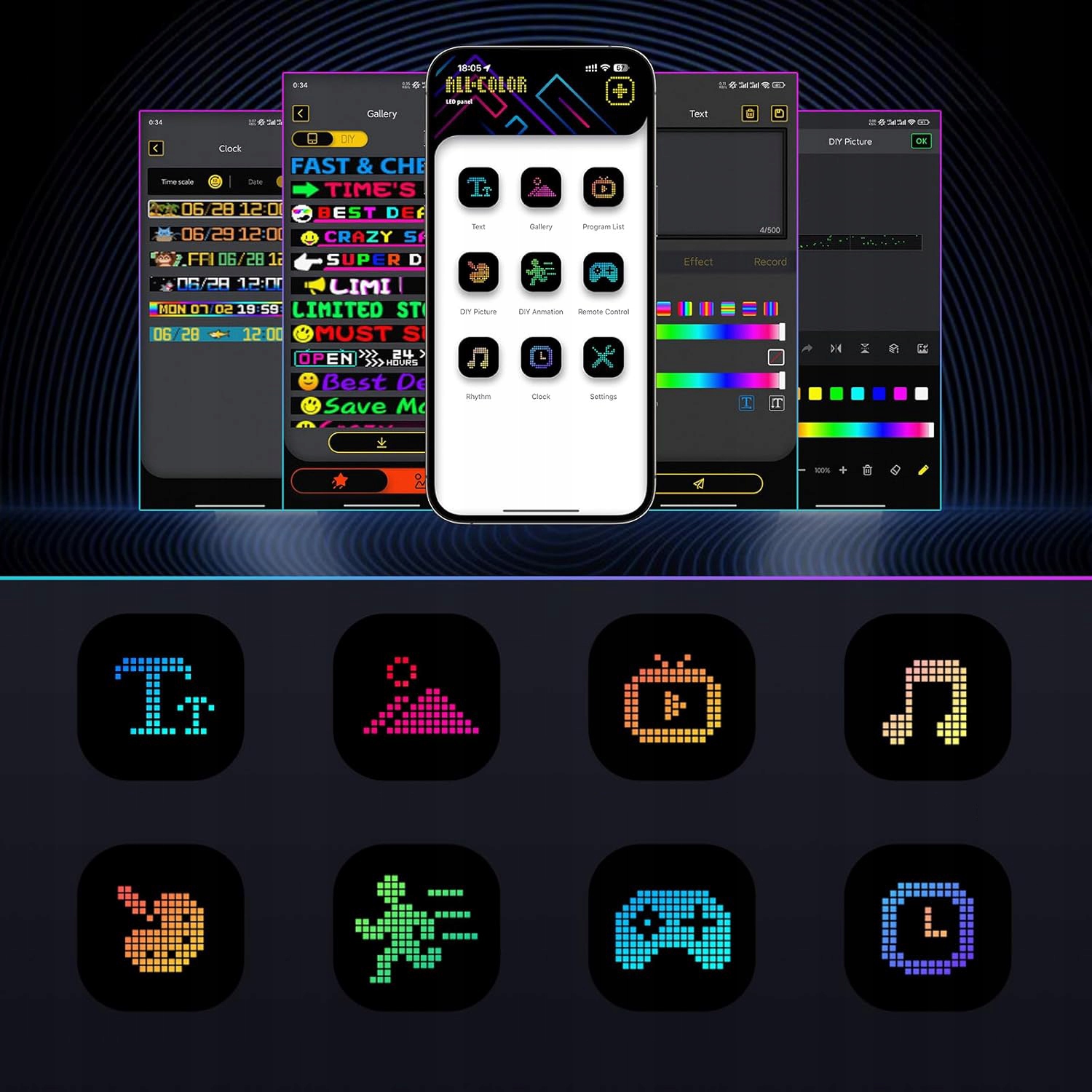 ✅ Повна персоналізація - світлодіодна панель дозволяє програмувати власні написи, конструкції, легкі ефекти та анімації, які можуть бути адаптовані до ваших потреб. Незалежно від того, ви хочете створити динамічний рекламний банер, барвисті ефекти освітлення для внутрішнього оздоблення або виняткове освітлення для подій та свят - все можливо!