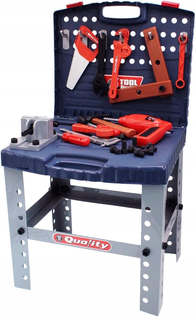 Верстак з інструментами — це набір, який точно задовольнить кожного маленького ентузіаста DIY! У набір для майстерні входить багато аксесуарів (гвинти, гайки, викрутки та ін.). Після вставки акумулятора в дриль і натискання кнопки дриль крутиться як справжня дриль! Іграшка займає мало місця і легко збирається/розбирається (зрозуміла інструкція користувача)