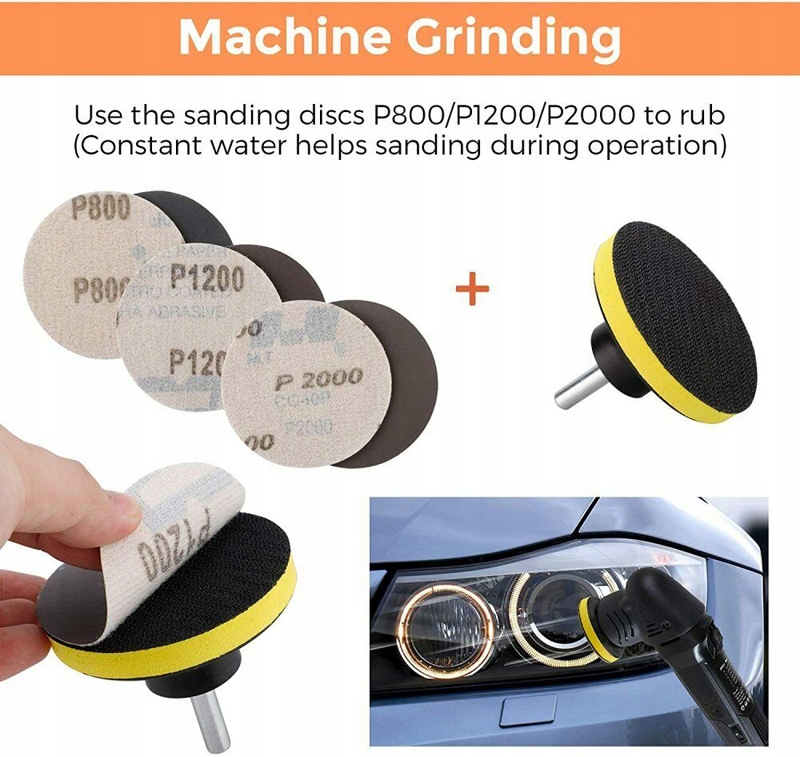 - Наждачний папір, змочений у воді, на задній частині губки, фари на поверхні брудної частини відшліфовуються.
