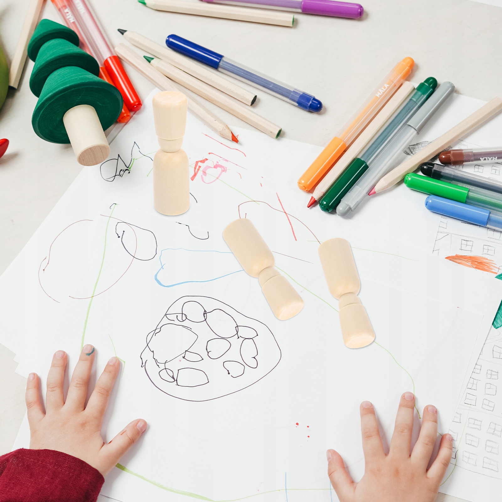 ✅ Ці дерев’яні ляльки на кілочках — розвиваюча іграшка для дітей, яка розвиває ручні навички, уяву та творчі здібності, а також навички малювання.