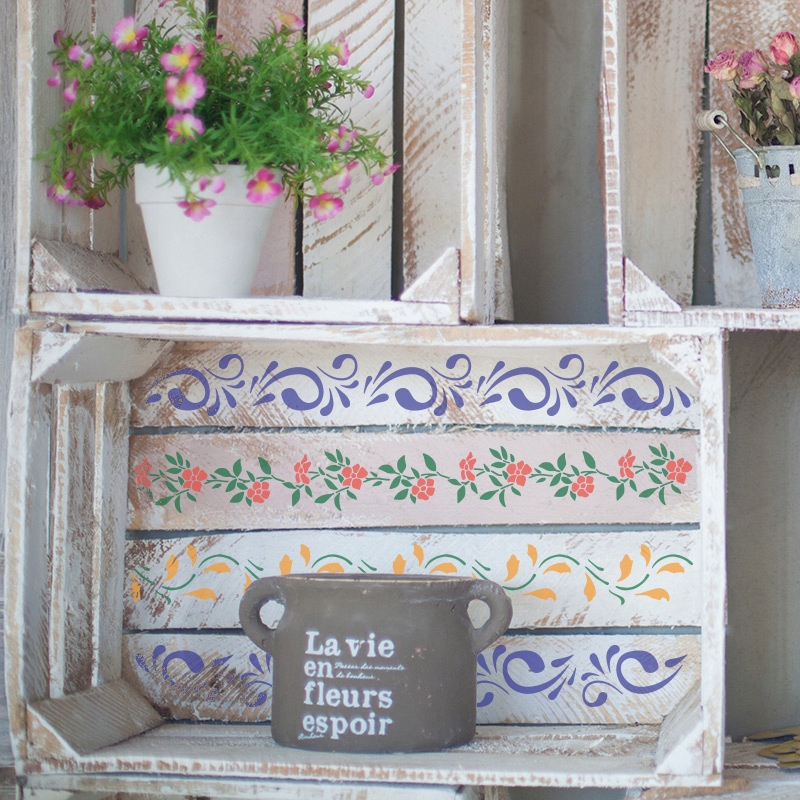 Завдяки красивому візерунку квіткової рамки ви можете легко дати нове життя старим меблям і предметам, прикрасити листівки та запрошення або оживити порожню стіну. Просто заповніть візерунок будь-яким засобом, наприклад крейдяною фарбою, акриловою фарбою, текстурованою пастою, позолотою, блискітками, туманом або будь-якою іншою технікою.