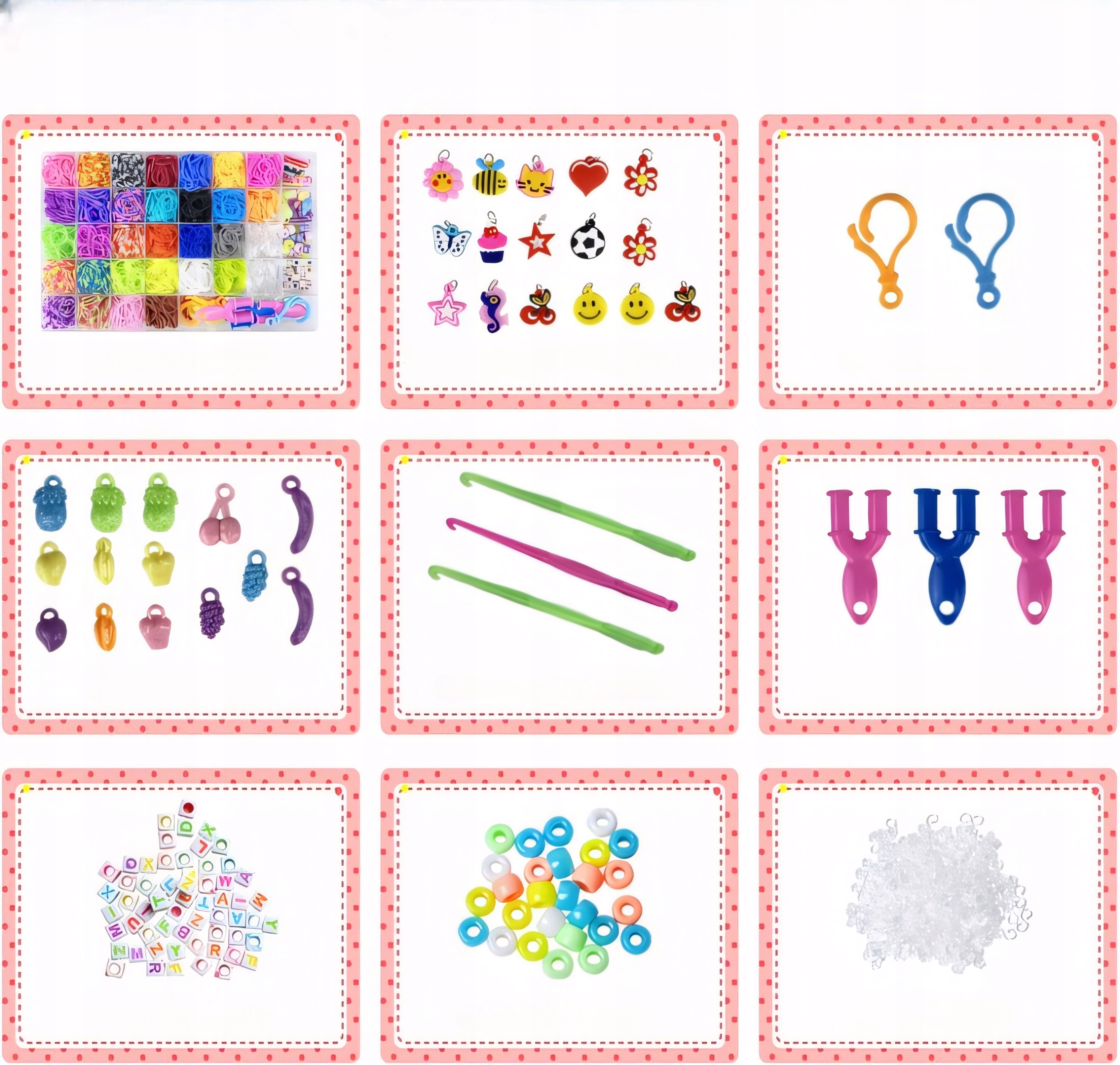 ✔ 2700 елементів у наборі - багато гумки та аксесуарів для створення ювелірних виробів