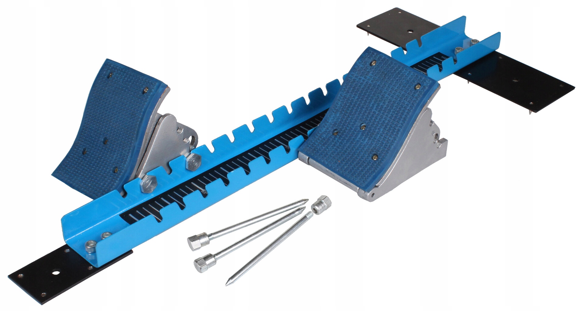 Стартовий блок дії складається з сталевого корпусу шириною 75 см з запиленою поверхнею та канавками твердих литих педалей алюмінію, які регулюються під чотири кути з пружинним механізмом. Початковий блок дії призначений для тартанської поверхні, на яку SE три нігті (2 на задній частині + 1 спереду). Pro Ідеальна стабільність Дно стартового блоку додатково доповнюється п’ятнадцятим мільйонами шипів.