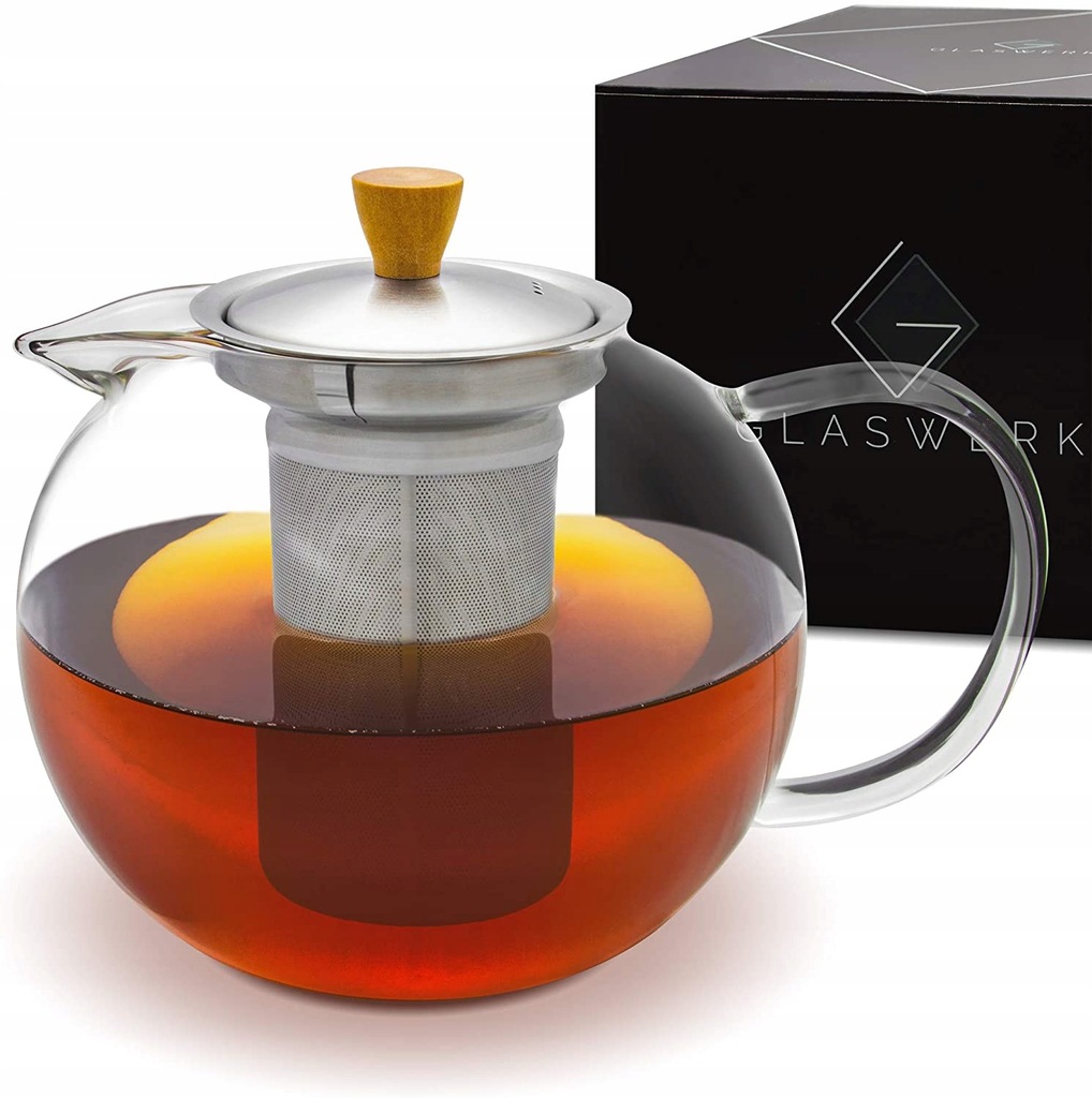 - ☕ Повний аромат - завдяки знімному ситечці ви можете легко тримати час заварювання. Завдяки надзвичайно довгому фільтру трави можуть оптимально розвивати свій аромат навіть з невеликою кількістю води. ☕ Борозальне скло - дорогоцінні матеріали (теплостійке скло з борузем, нержавіюча нержавіюча сталь та деревина) у поєднанні з високою якістю виготовлення гарантують максимальну міцність. ☕ Правильний розмір - ваш новий чайник потужністю 1,3 літра пропонує достатньо місця для 5-6 чашок. Чай вільно поширюється на велике сито і оптимально розвиває свій аромат. ☕ Легко в чистоті - кожна частина чайника видаляється для легкого вручного очищення. Глечик також можна легко очистити в посудомийній машині.