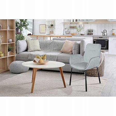 М'яке сидіння оточене оксамитовим покриттям, що надає стільцю елегантний вигляд. Декоративний шов на спинці робить простий дизайн більш привабливим і в поєднанні з підлокітниками створює модний ретро характер. Міцні металеві ніжки доповнюють загальний образ крісла та забезпечують стабільну основу. Насолоджуйтесь